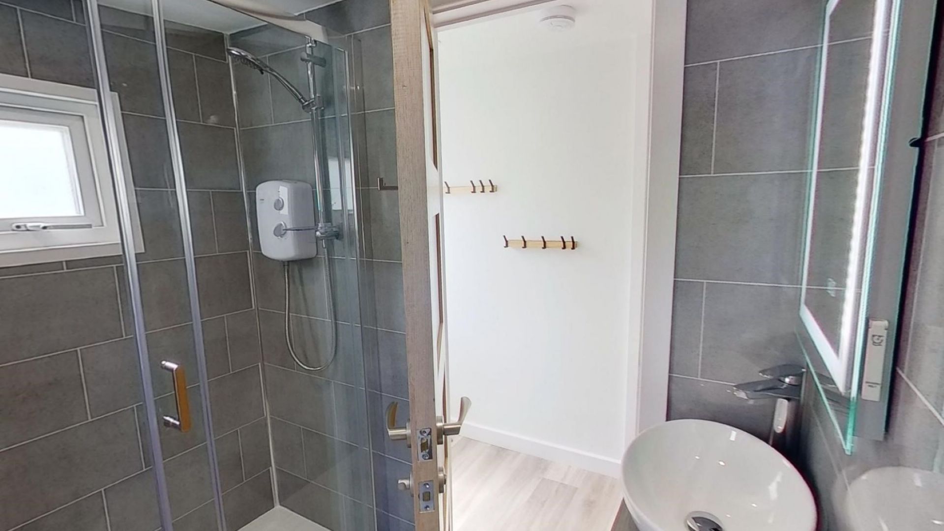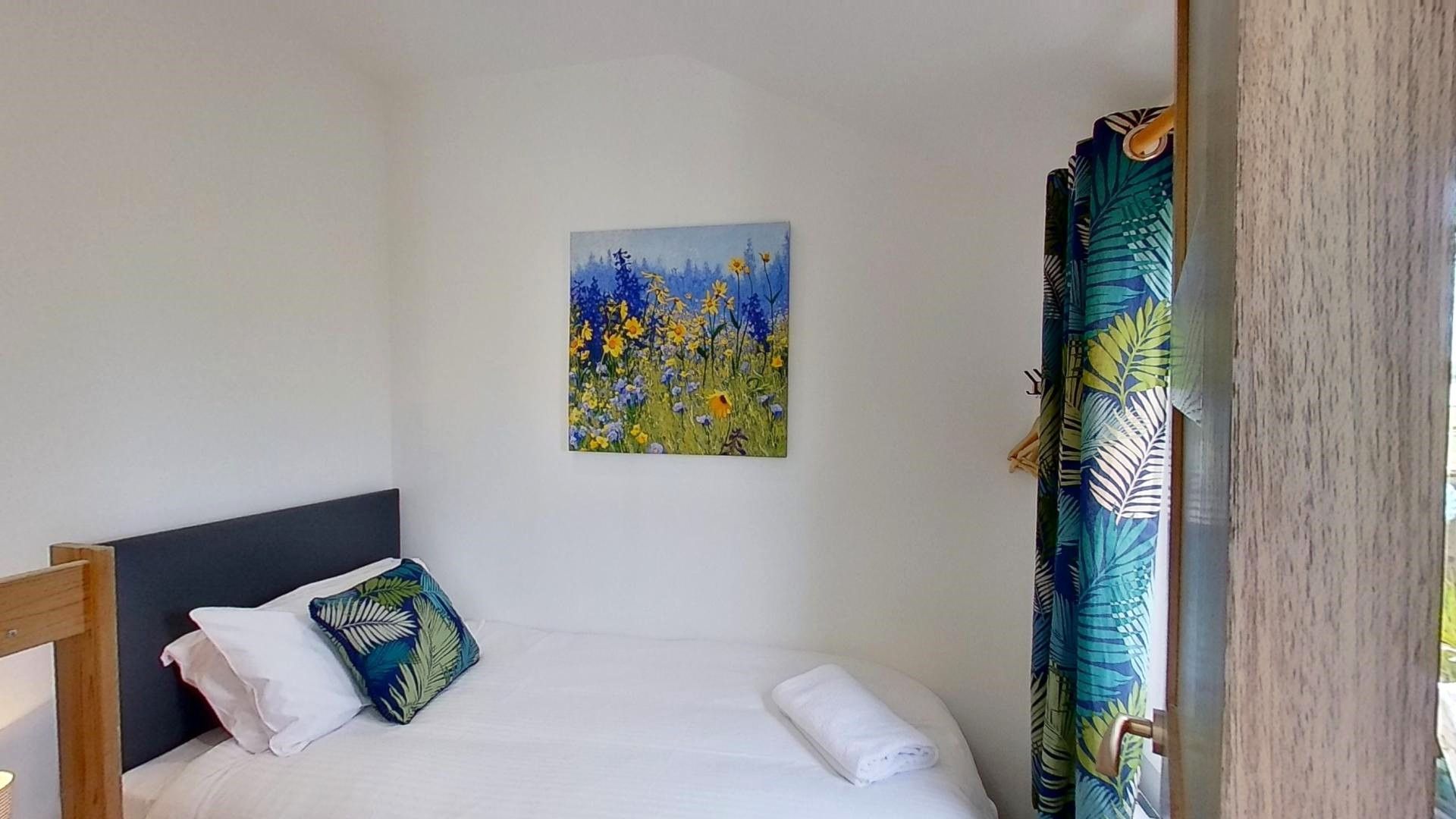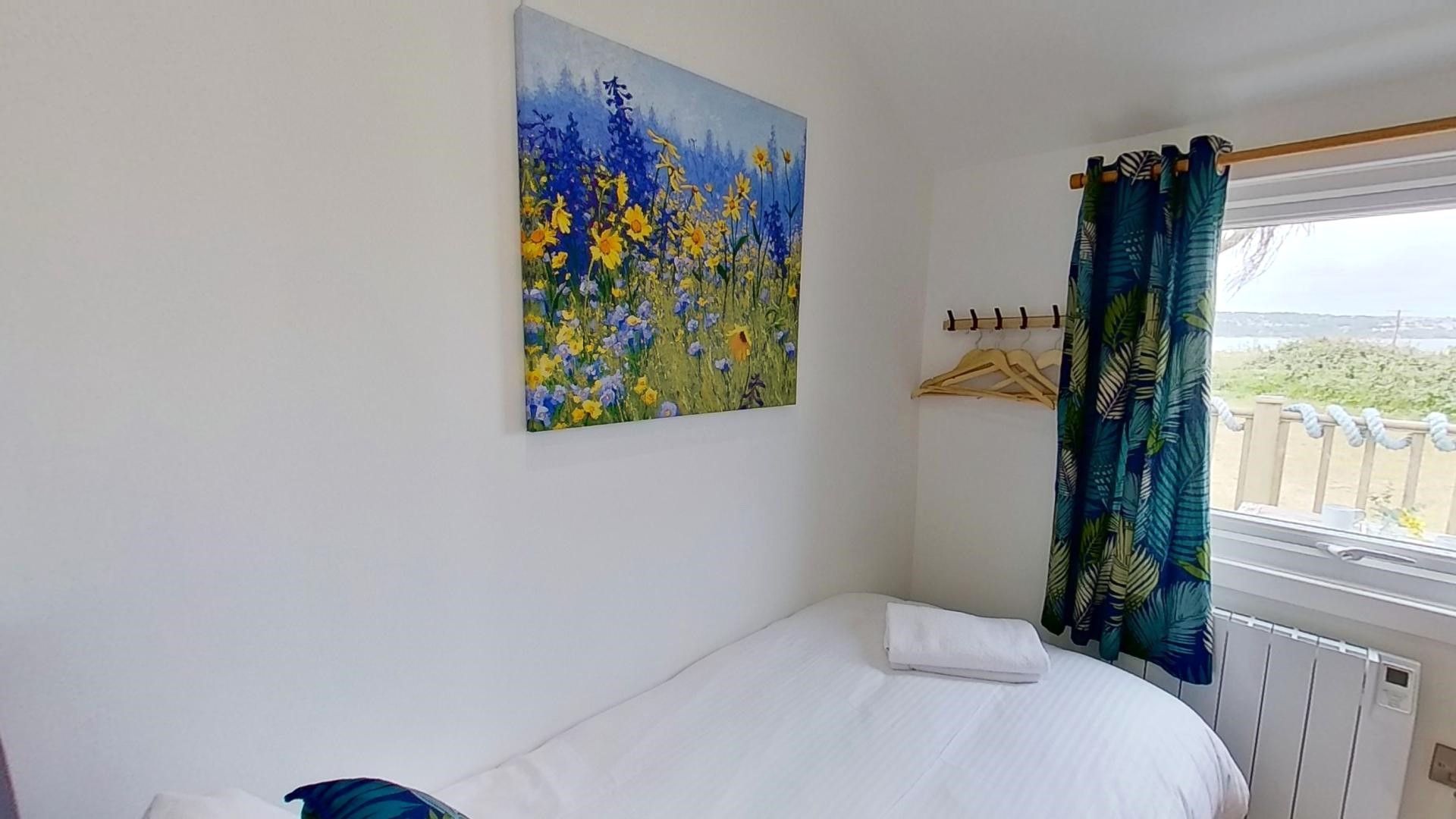 Living/ Kitchen/Dining Area: With a TV, sofa, two easy chairs and dining table and chairs. French doors open on to the deck. Kitchen: Newly refurbished with an electric hob, oven fridge with small freezer section and microwave. Bedroom 1: With a double bed, chest of drawers and hanging space. Bedroom 2: This room has a single bed, hanging space and shelving.