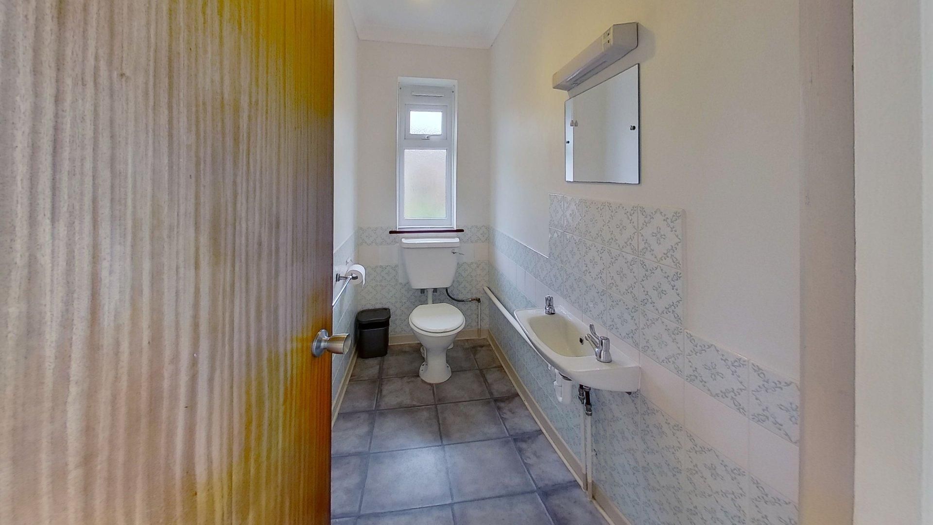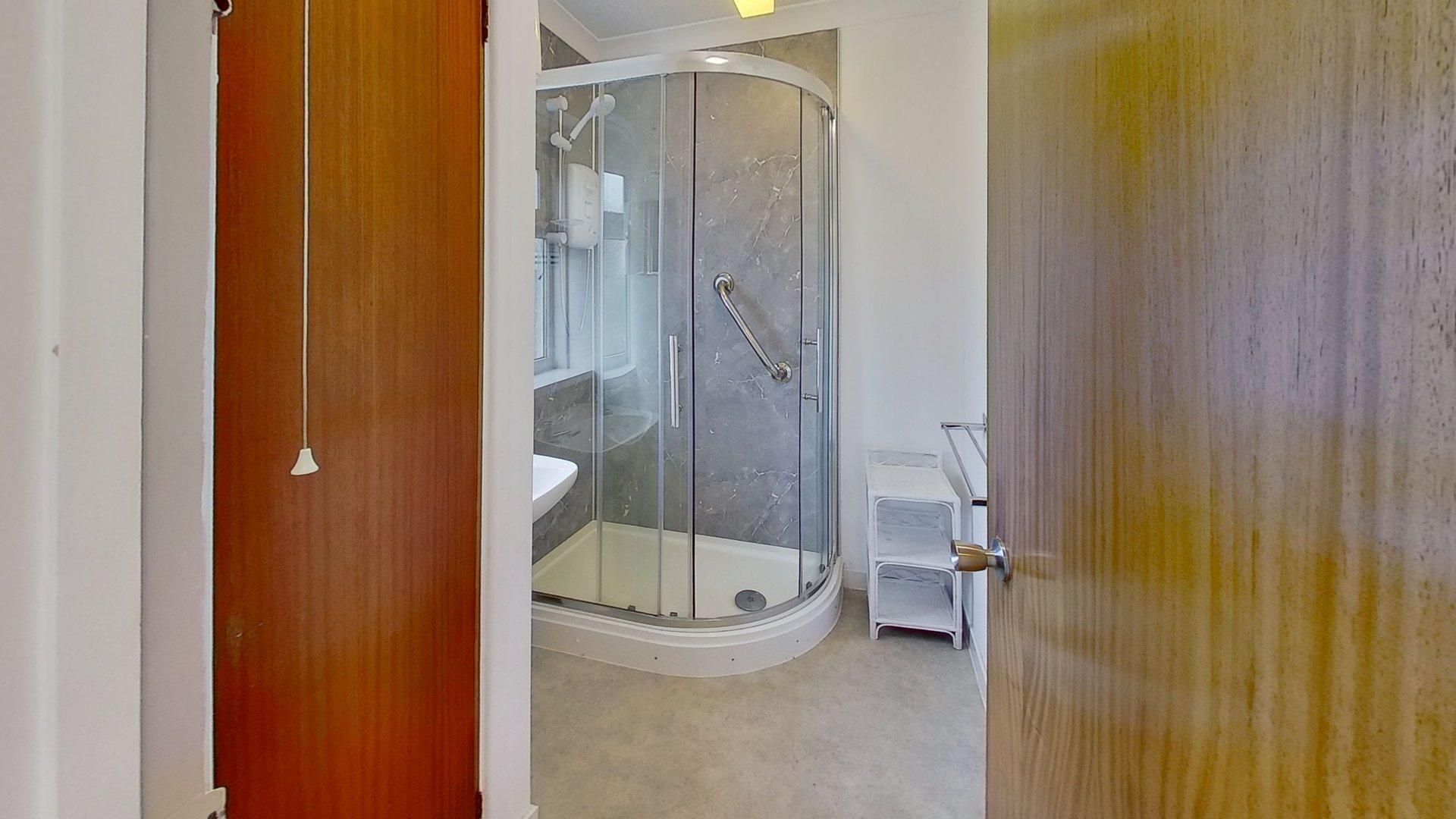 Shower Room- Newly fitted shower cubicle, wash basin and wall heater. Separate WC and small hand basin.
