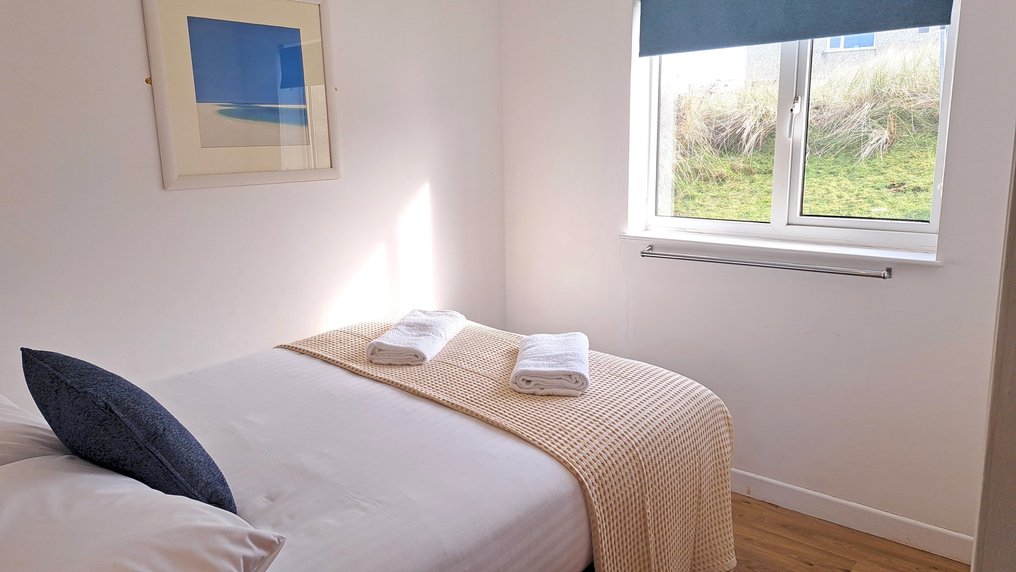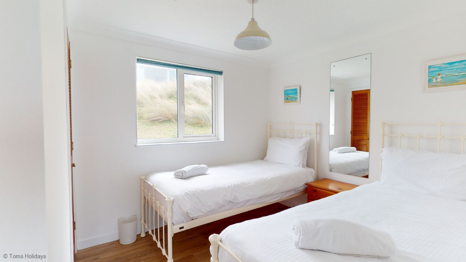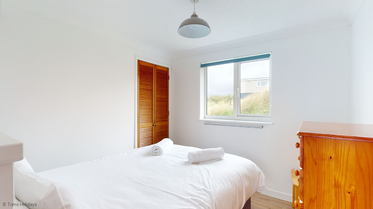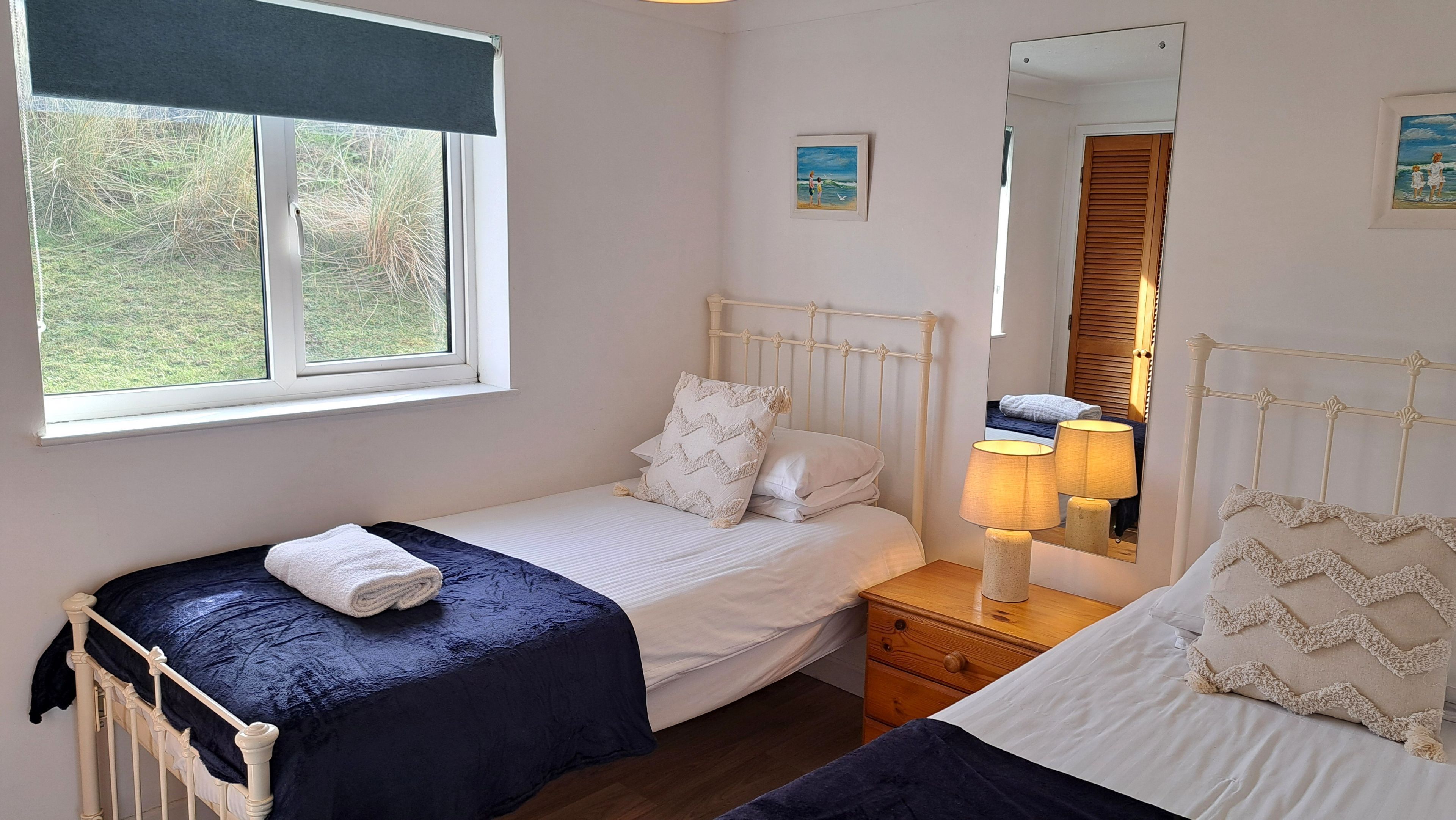 A beach bungalow with three bedrooms (2 doubles and 1 twin), an open plan living/dining space with doors which open onto grassy dunes and outdoor seating space, well equipped kitchen, bathroom and WC. Ebb Tide offers comfortable accommodation for up to six guests.