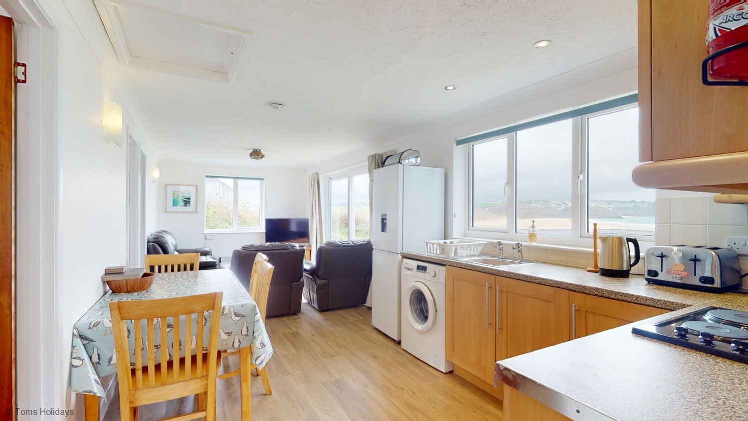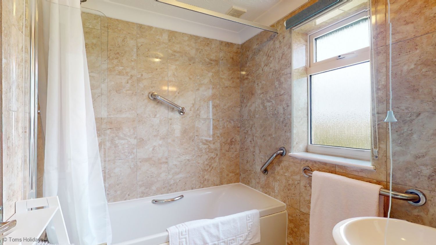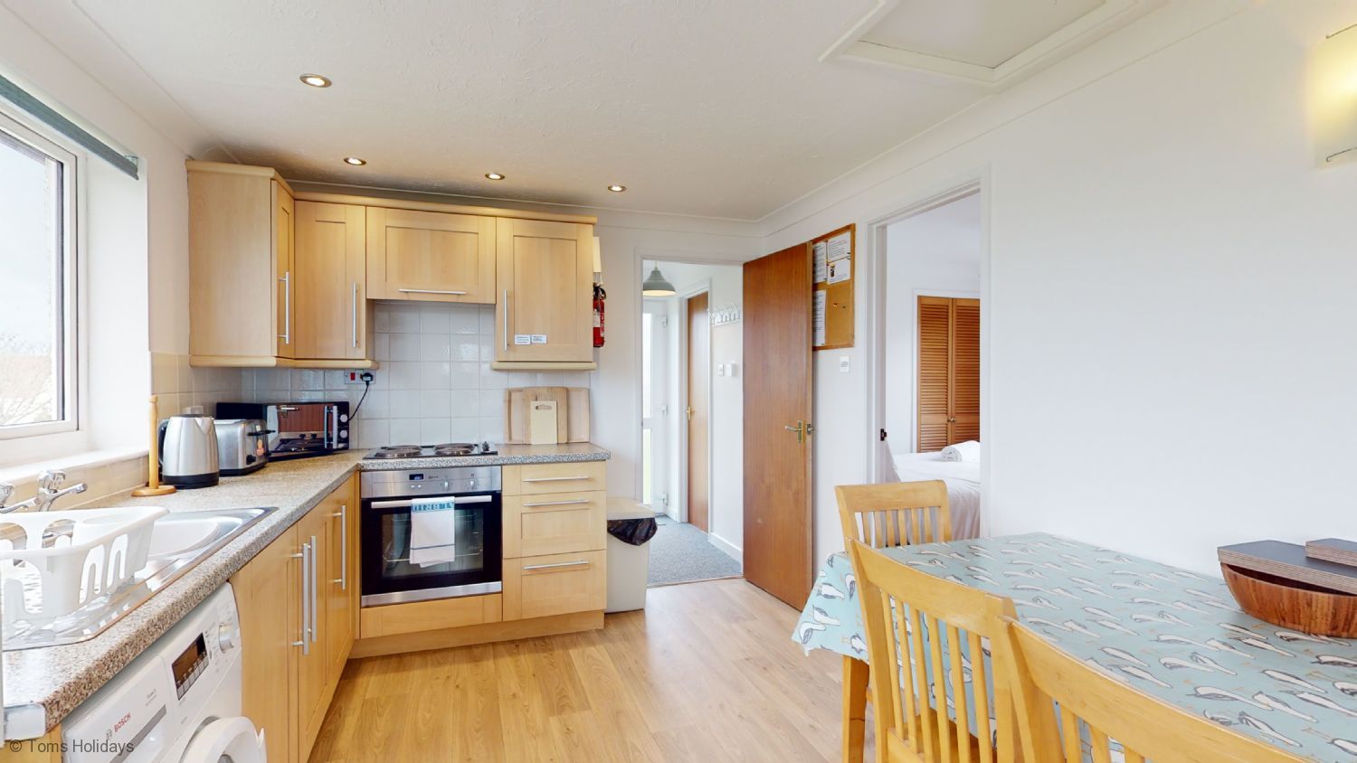 Bedroom 1 - With a double bed, fitted wardrobe and chest of drawers. Bedroom 2 - With a double bed, fitted wardrobe and chest of drawers. Bedroom 3 - Two single beds, a fitted wardrobe and chest of drawers. Living Room - Comfy sofa and easy chairs, TV and DVD player, fabulous beach and sea views through patio doors and kitchen windows. Just a short stroll to the golden, sandy beach. Kitchen/Diner - Including a washing machine and fridge/freezer, hob and oven, microwave, dining table and chairs. Bathroom - Bath with overhead shower, separate WC.