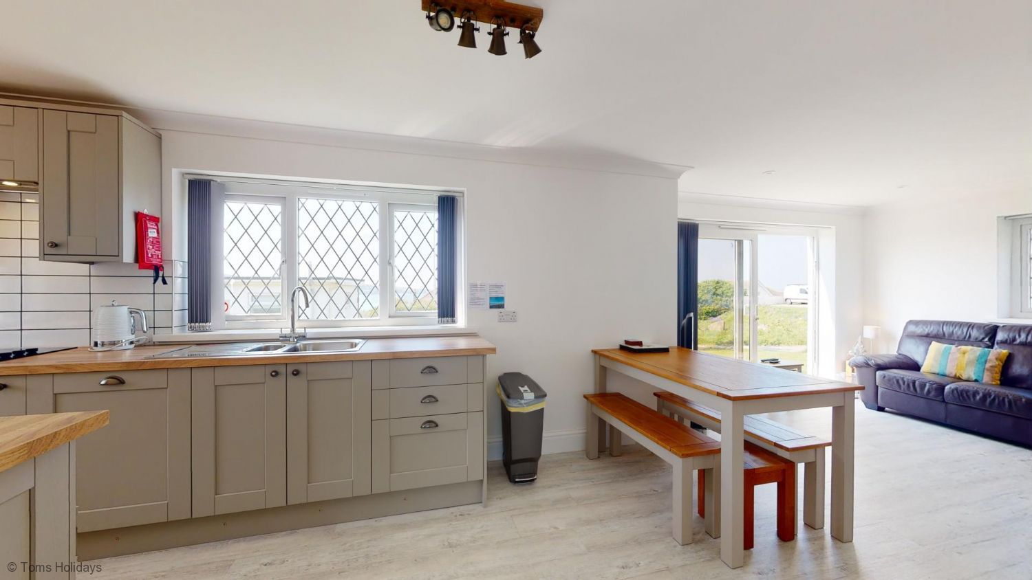 With three bedrooms (1 double, 1 twin and 1 bunk), spacious modern kitchen with breakfast bar and dining space, and lounge with views towards the ocean, Blue Bay really lives up to its name, taking in the striking blues of sea and sky at St. Ives Bay.