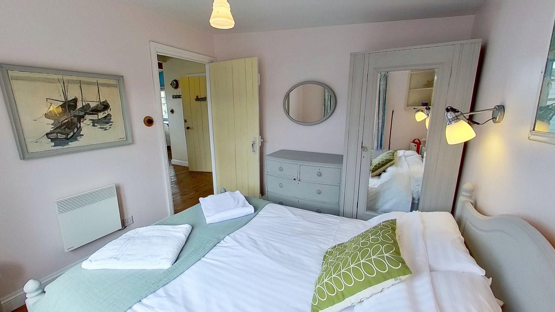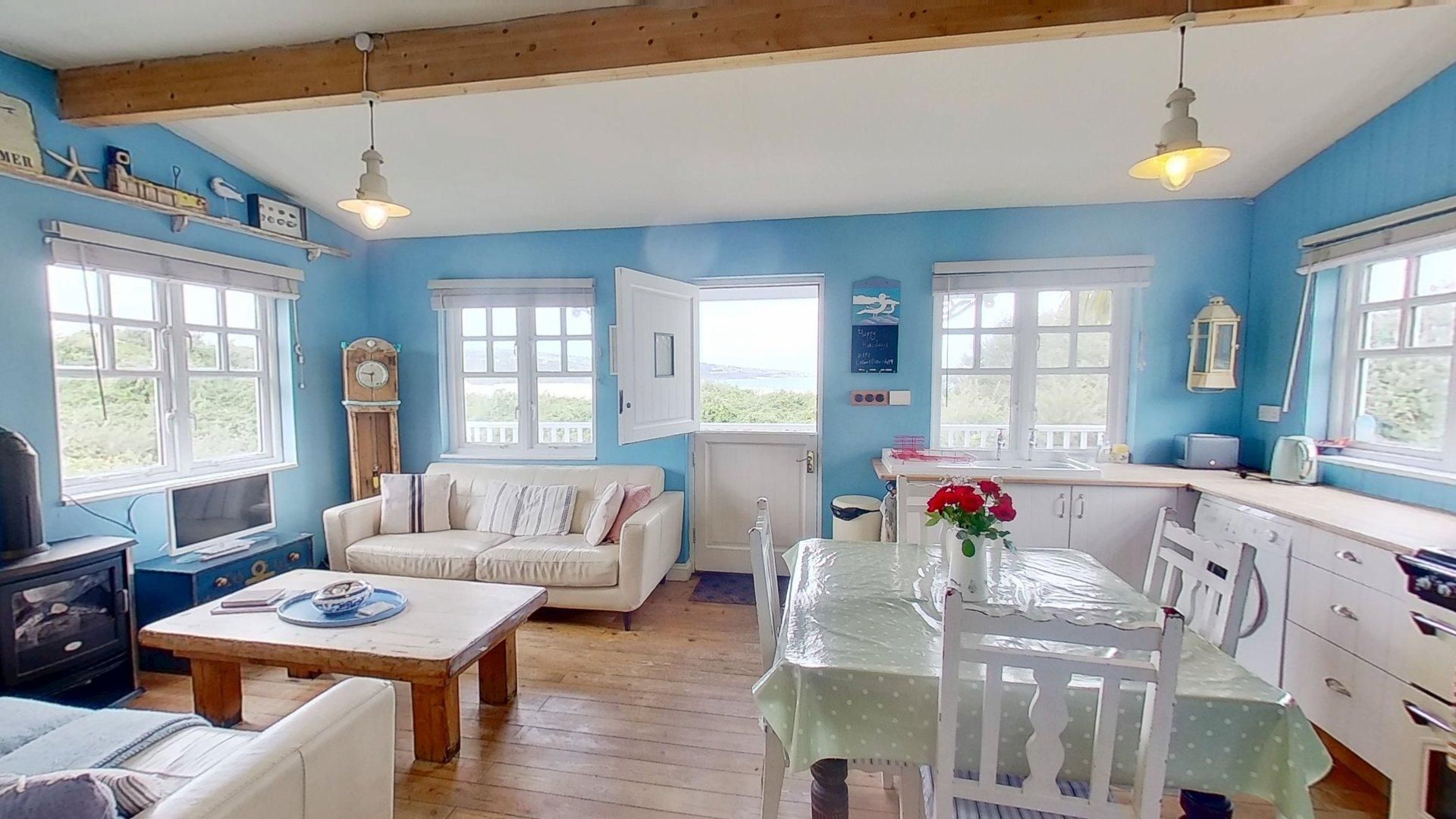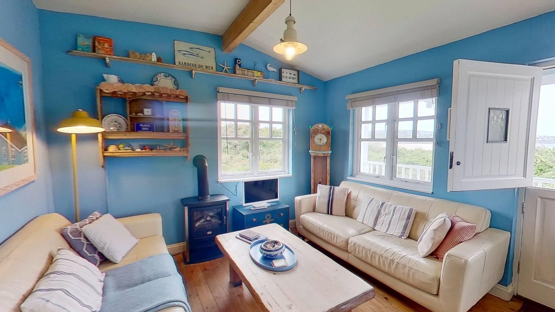 Bedroom 1 - A double bed, a wardrobe and a chest of drawers. Bedroom 2 - Two single beds and a chest of drawers. Bedroom 3 - A charming room has a single bed and a chest of drawers. Living/Dining/Kitchen Area - An open plan living and kitchen area. The living area has two comfy sofas, a coffee table, TV and a wood burner effect stove. A lovely stable door opens onto the covered veranda, overlooking St Ives Bay. There is a farmhouse table and chairs, and the kitchen has fitted units, a Smeg fridge/freezer, a double oven, a washing machine and a traditional dresser. Bathroom - Bath with overhead shower, basin and WC. Outside - Veranda with views over the Bay at the front of the property. On site parking close by.