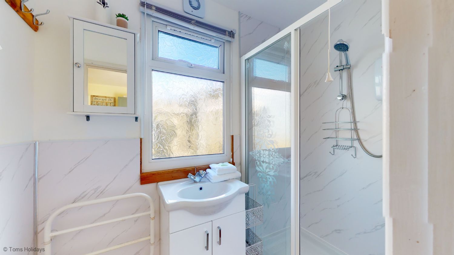 Kitchen - well equipped kitchen with oven, hob, microwave, toaster, kettle, washing machine and fridge / freezer. Breakfast bar for two. Bathroom - spacious shower, basin, heated towel rail. Door to separate toilet. Open plan lounge / diner - with sofa and two comfy chairs, tv & dvd player. Dining room table with seating for six and dresser. Views towards St. Ives bay from the dining room table. Sunroom / porch - with wicker occasional chair and bistro style table and two chairs. Views towards St. Ives Bay. Bedroom 1 - double bed, bedside table with lamp & built in storage. Bedroom 2 - twin single beds with bedside table and lamp. Chest of drawers, built in storage, occasional chair. Views towards St. Ives Bay. Bedroom 3 - bunk room with bedside table & lamp. Chest of drawers, built in wardrobe.
