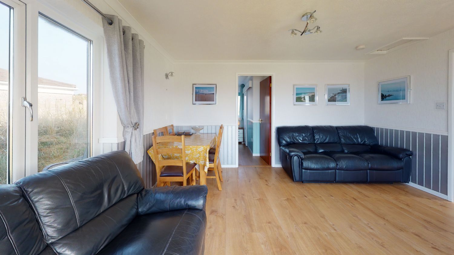 Bedroom 1- 1 double bed, fitted wardrobe, chest of drawers, blackout blind, lamp. Bedroom 2 - 1 double bed, fitted wardrobe, chest of drawers, blackout blind, lamp Bedroom 3 - Full size twin bunk beds, chest of drawers, blackout blind. Lounge/Diner - Sofas and recliners, dining table and chairs, TV & DVD Player, nest of tables, Large Patio doors with panoramic views of the bay. Kitchen - Fully fitted kitchen with cooker, fridge freezer, washing machine, dishwasher, coffee machine, underfloor heating, microwave, views of the bay. Shower Room - Fitted Shower Cubicle, W.C., W.H.B., Heated Towel Rail, underfloor Heating -