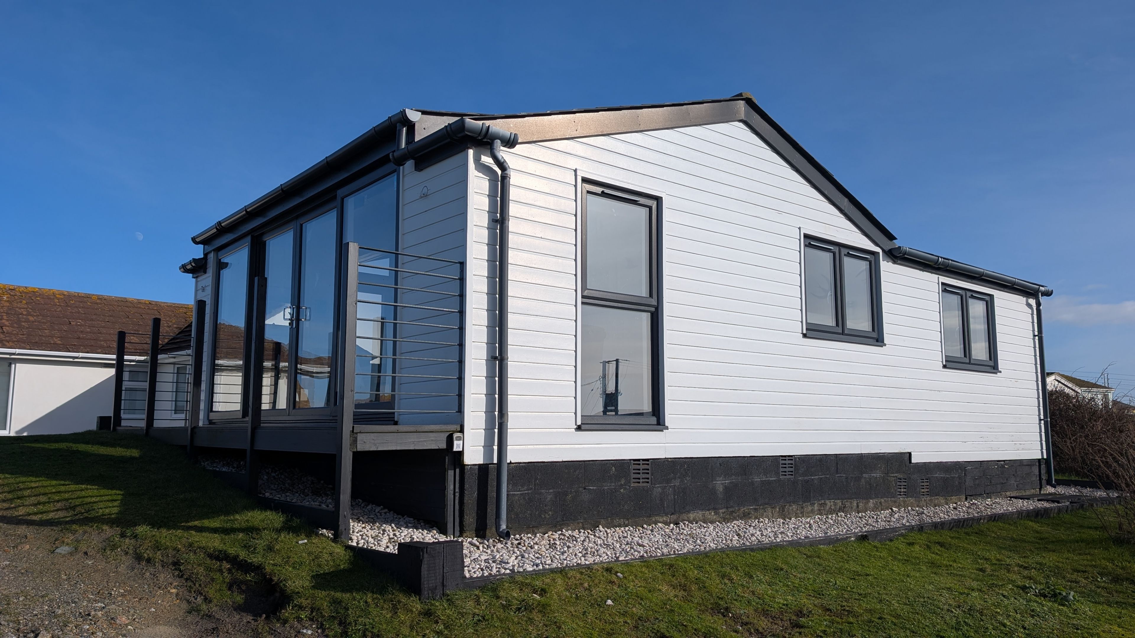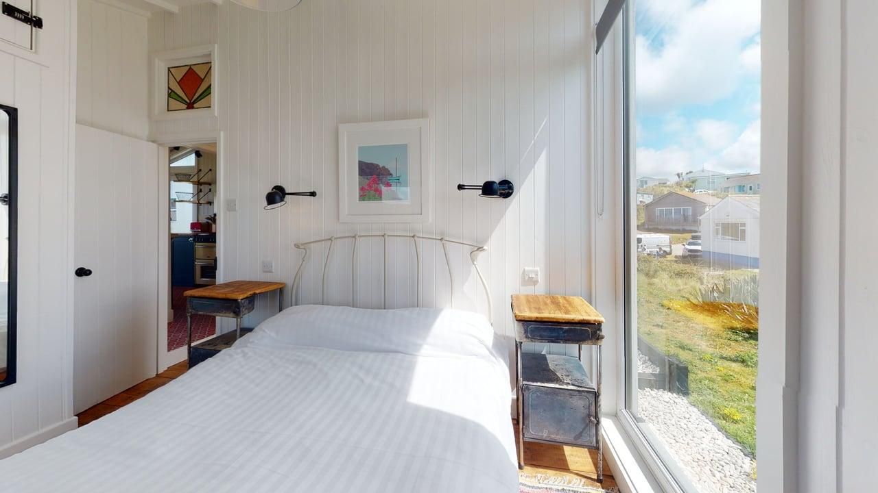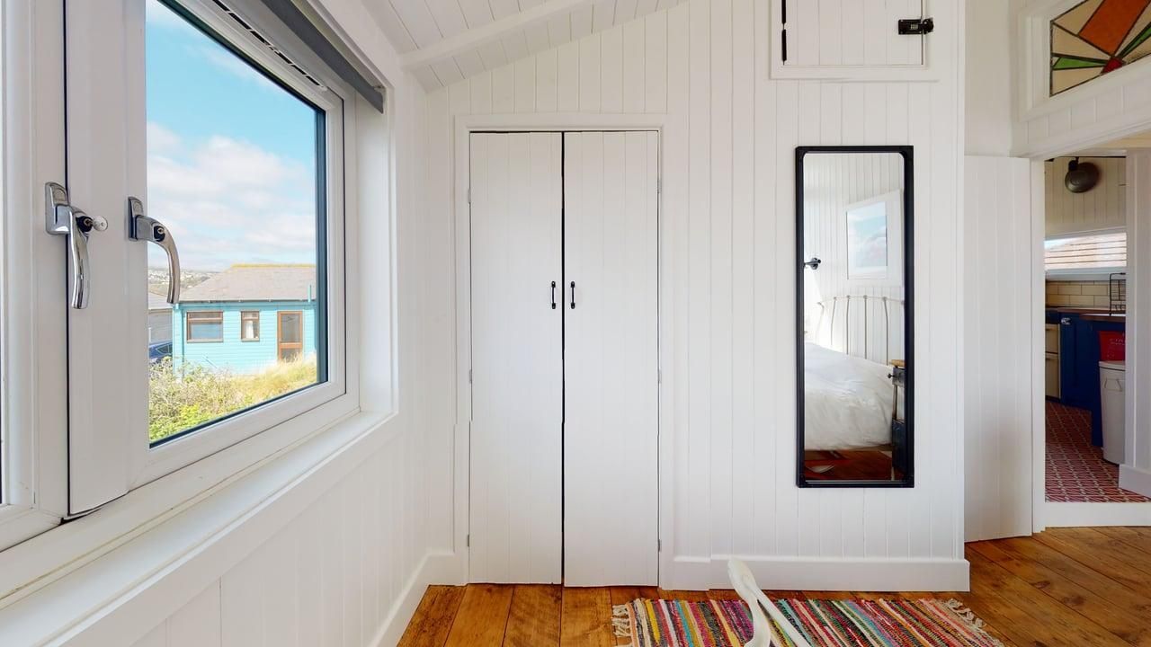 With three bedrooms (one double, one twin, one single), a living / dining space with spectacular sea views and glass doors which open onto an enclosed balcony. Modern retro kitchen, equipped with oven, hob, fridge, microwave and coffee machine and large shower room, Rosemary offers beach chalet luxe for up to five guests.