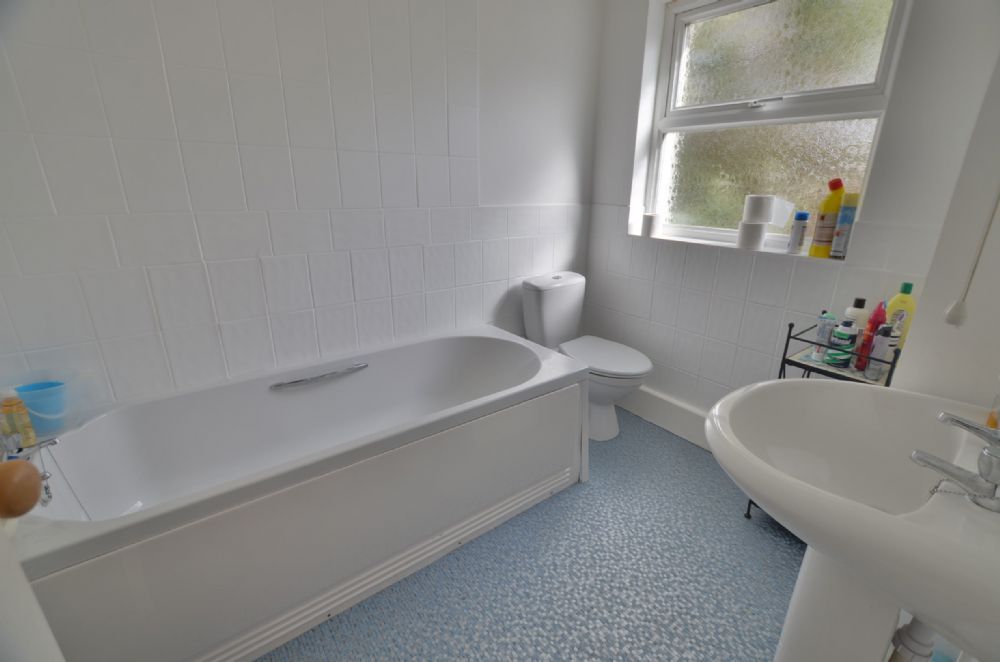 Family Bathroom- Bath with shower over, WC.