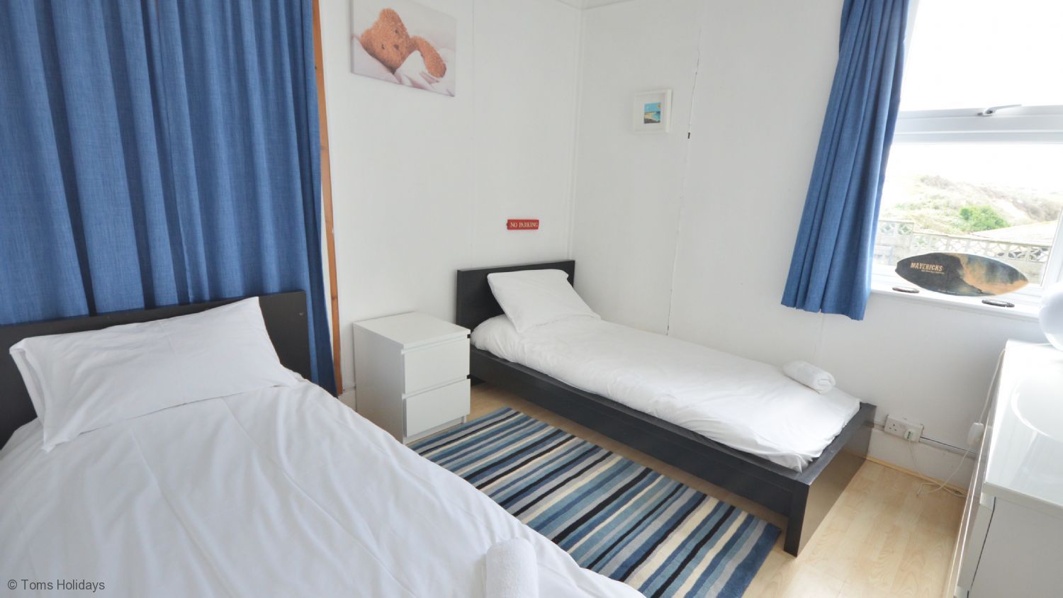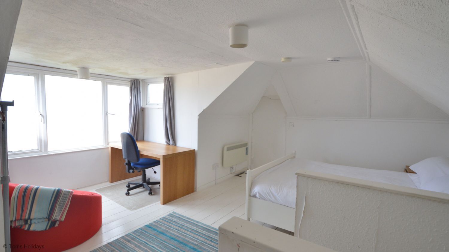 Bed 2- (upstairs) King size double bed and single bed. Panoramic views of the bay.