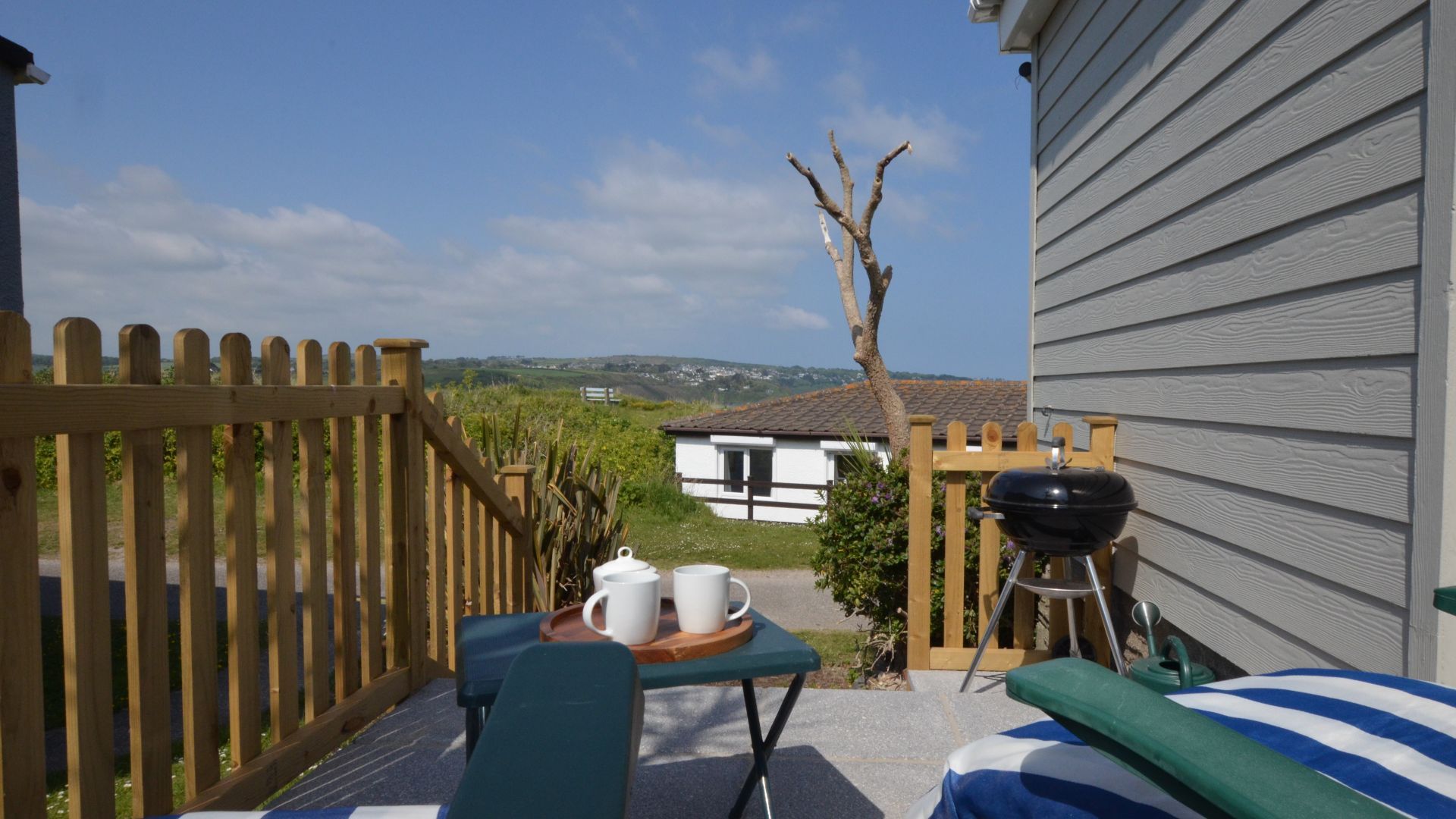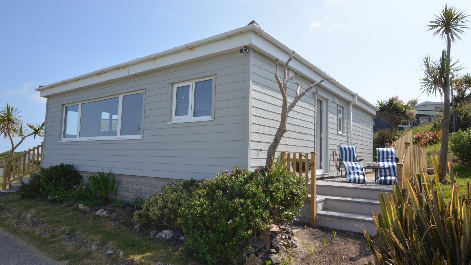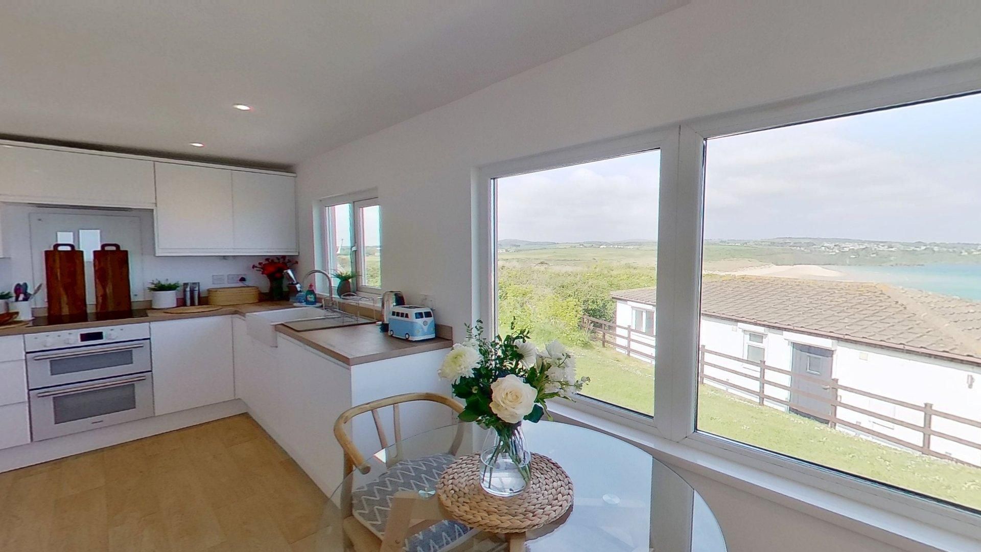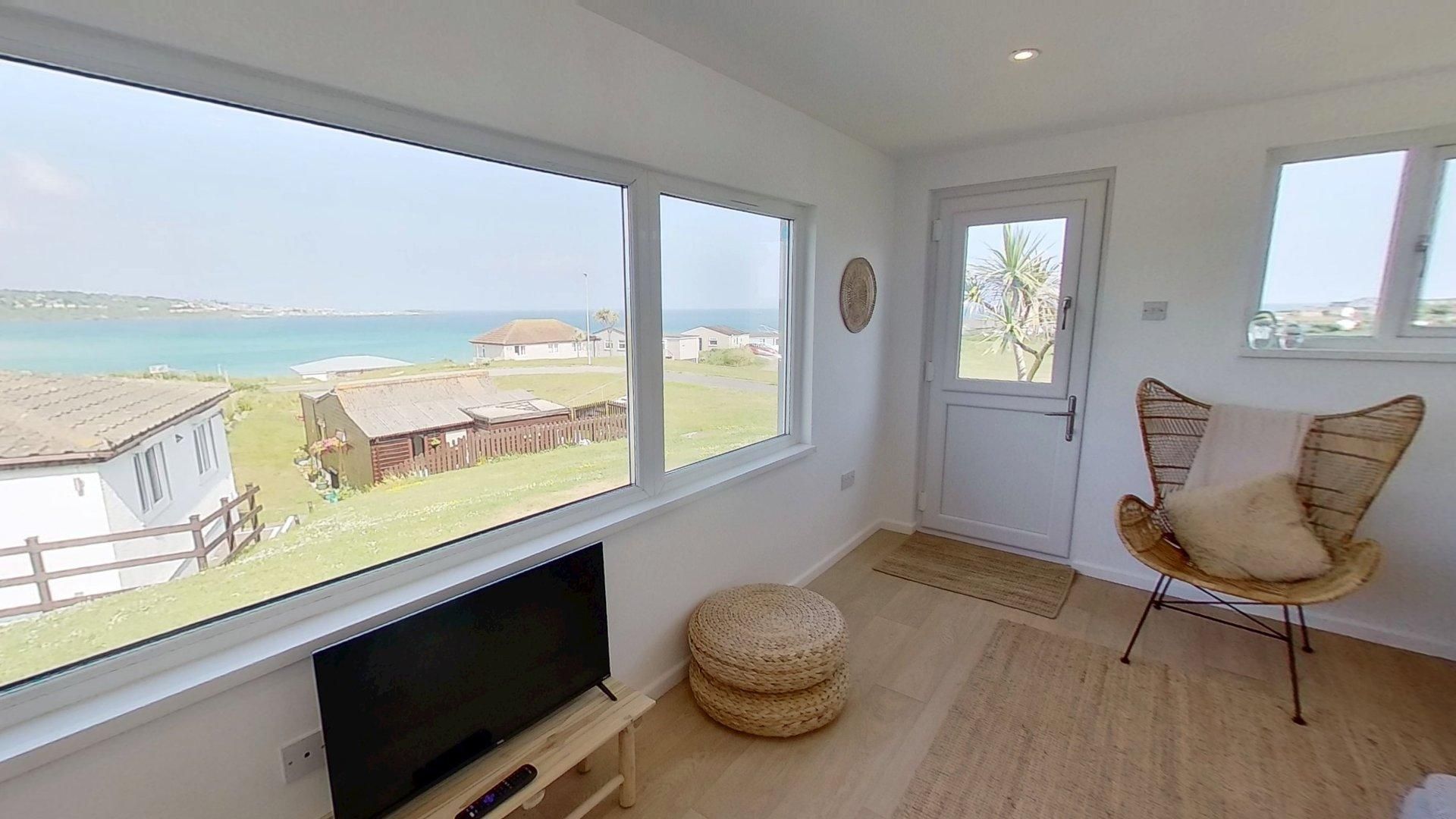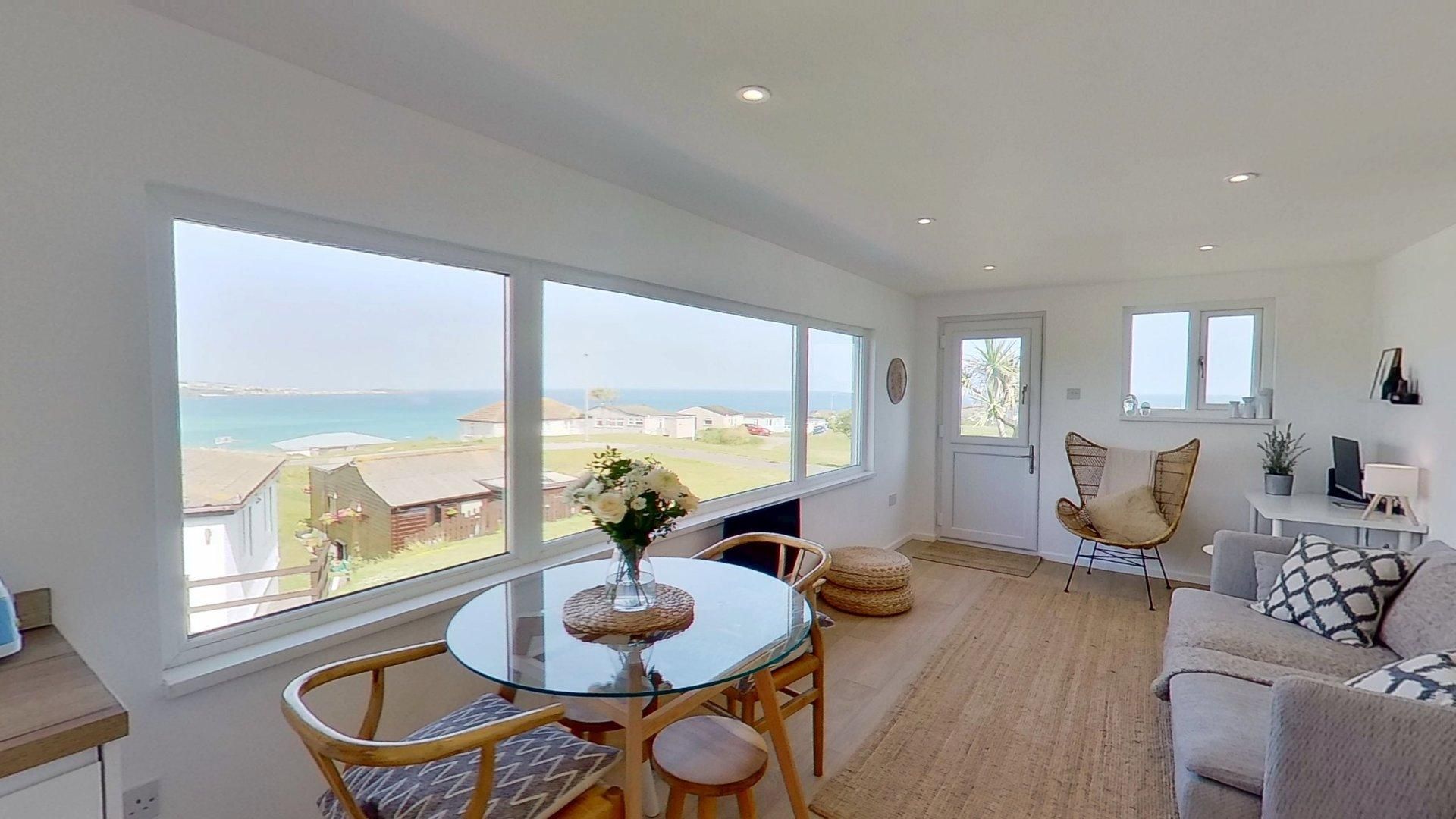Access - The front door is accessible via four stone steps and a handrail. There is also a second access to the property via the south facing patio. Living/Kitchen/Dining Area - A generous space with huge picture windows to take in the ocean views. The living area has a comfy sofa and chairs, a TV, plus a dining table and chairs. The new kitchen is well-styled and equipped with an electric hob and oven, fridge freezer, dishwasher, microwave and washing machine. Bedroom 1 - A large room with a king-size bed, wardrobe, bedside tables, and a dressing table. Bedroom 2 - Another spacious bedroom with twin single beds and a chest of drawers. Shower Room - Newly renovated with a large fitted shower cubicle, basin with vanity unit and WC. Outside: The property has a south-facing patio, which catches the sun from midday until sunset, plus a garden area to the rear. Ample parking can be found close to the chalet.