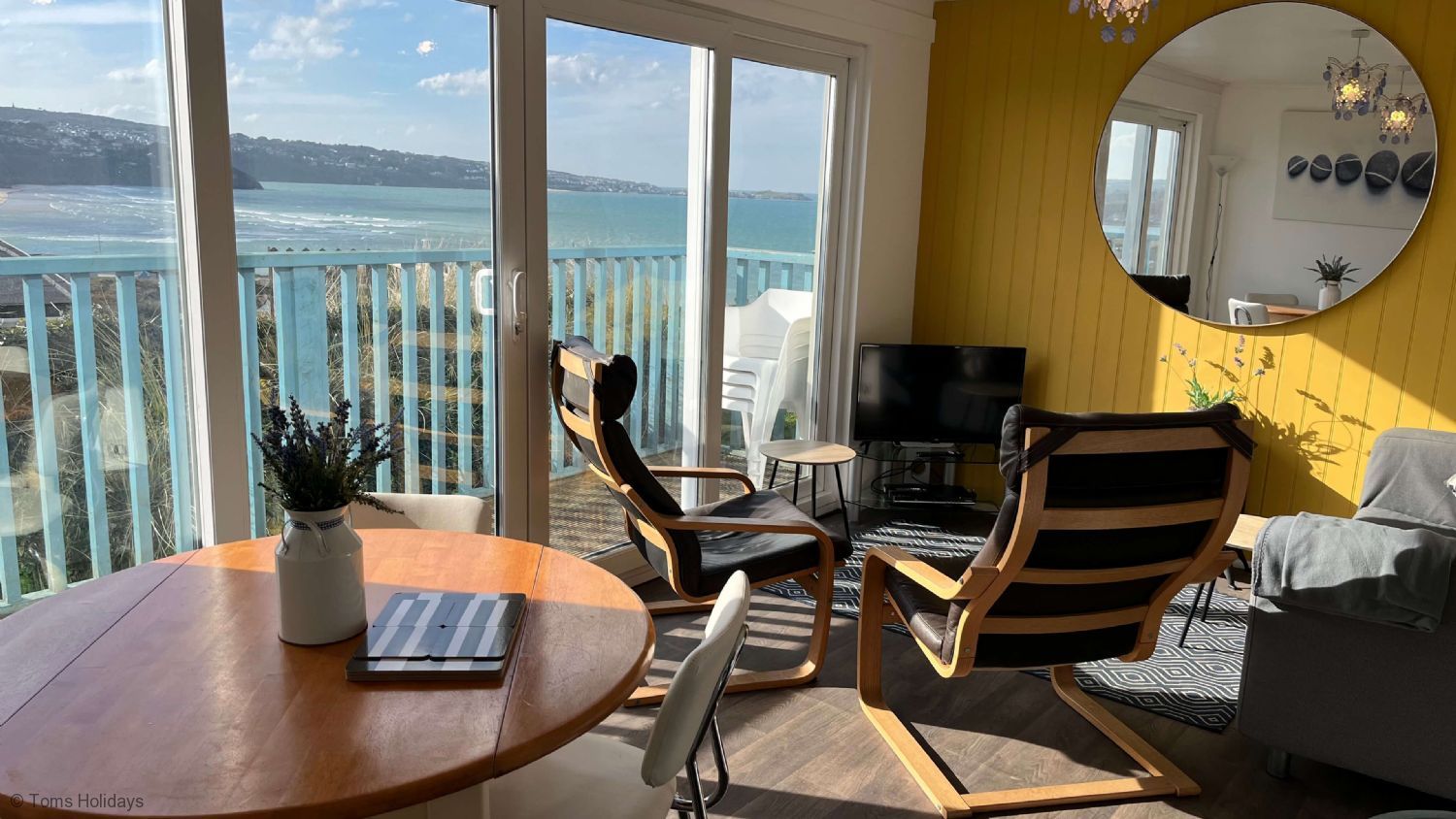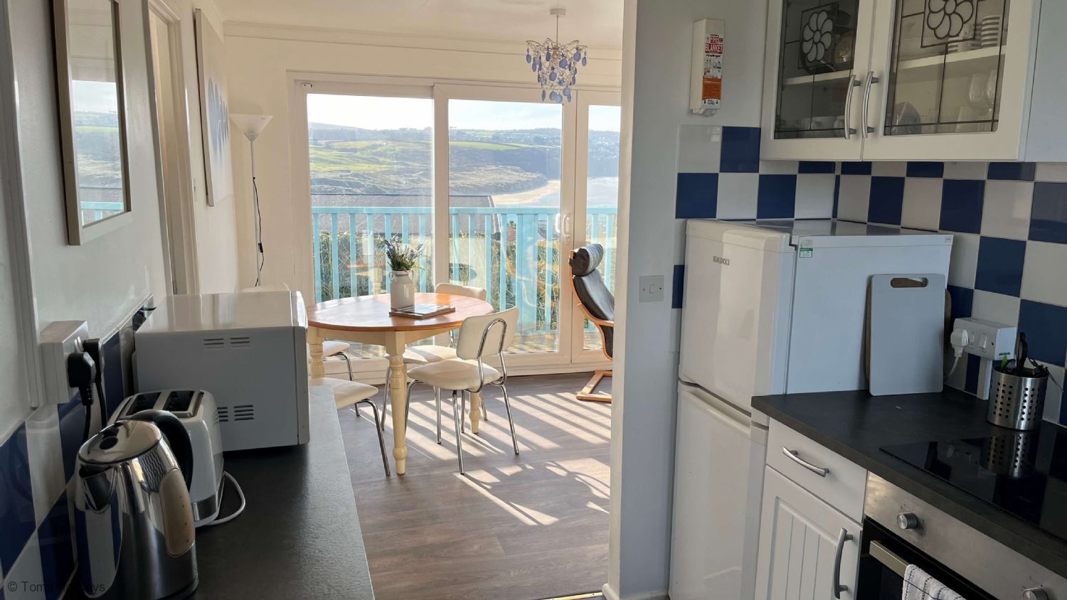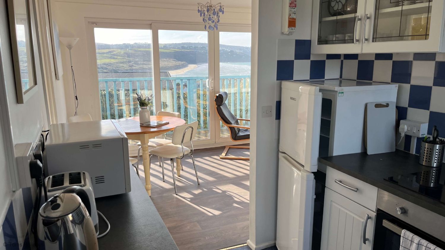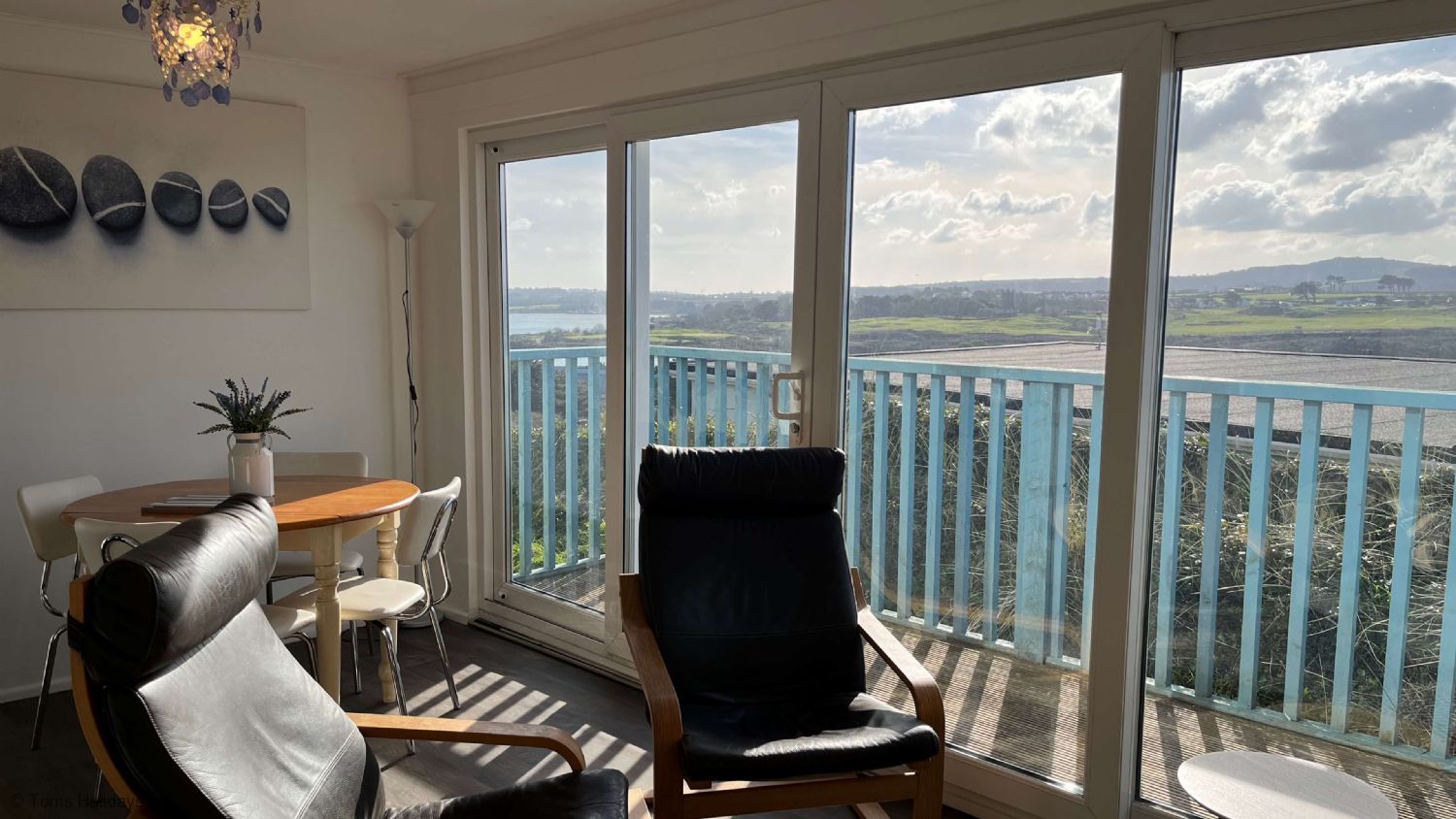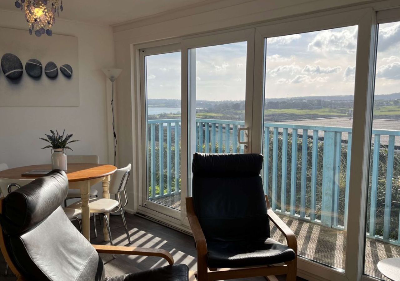 Living Room - With large picture windows with beach and sea views towards St Ives. Sliding glass door to large enclosed balcony with chairs and table. This room has a comfy sofa, arm chairs, TV with DVD player, plus dining table and chairs. Kitchen - Well equipped with a fridge/freezer, dishwasher, electric hob and oven, microwave, toaster and electric kettle. Bedroom 1 - With panoramic views across the bay to St Ives, Hayle Beach and Estuary. With a double bed, wardrobe and chest of drawers Bedroom 2 - Double bed, wardrobe and chest of drawers Bedroom 3 - Views across the Hayle Estuary to St Michael’s Mount in the far distance. With two single beds, wardrobe and chest of drawers. Shower Room - With a shower cubicle, basin and WC.