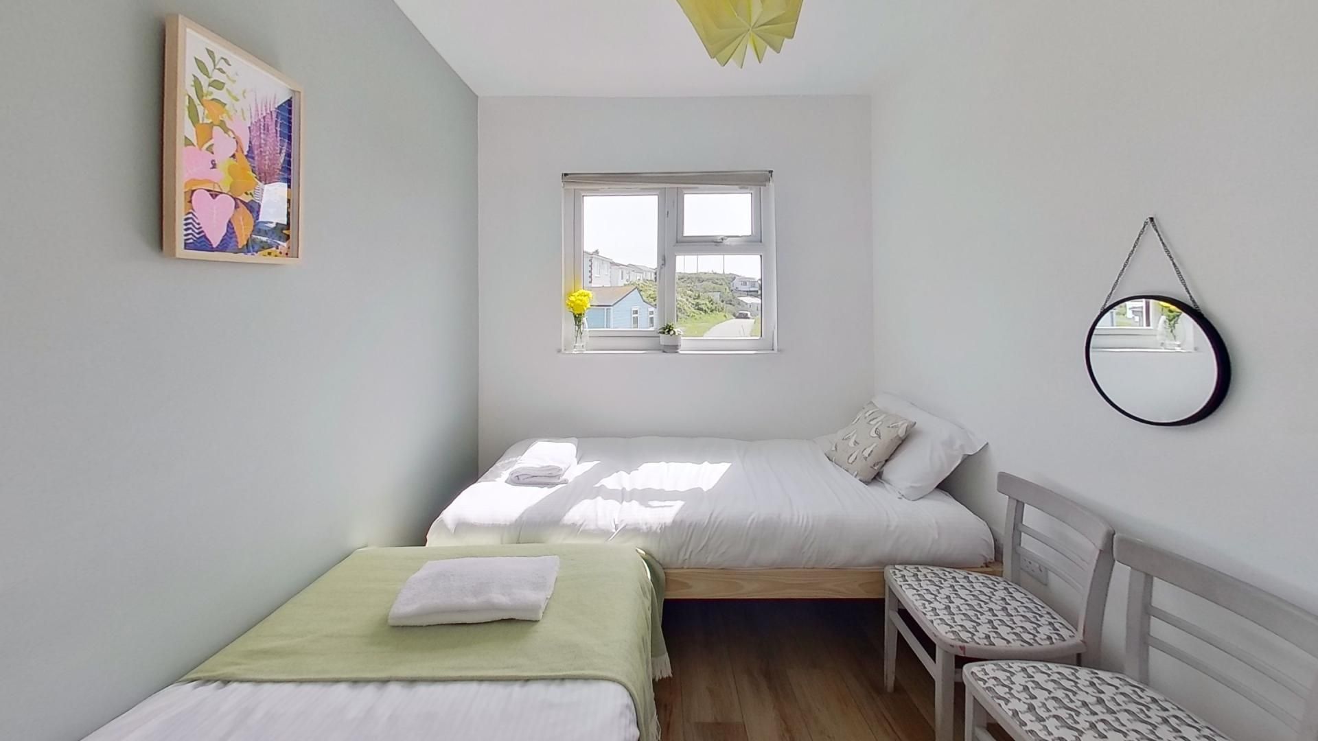 Bedroom 2 - Two single beds with wall hanging space.
