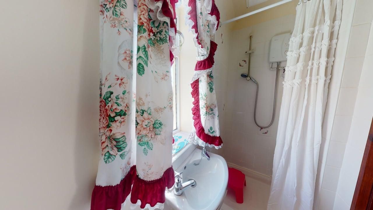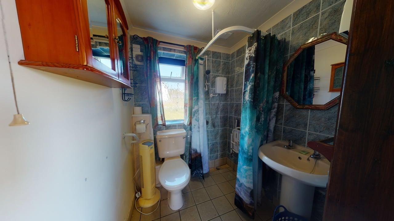 Wet Room - Open wheel-in wet room with grab rails suitable for wheelchairs with fitted shower seat, basin and WC.