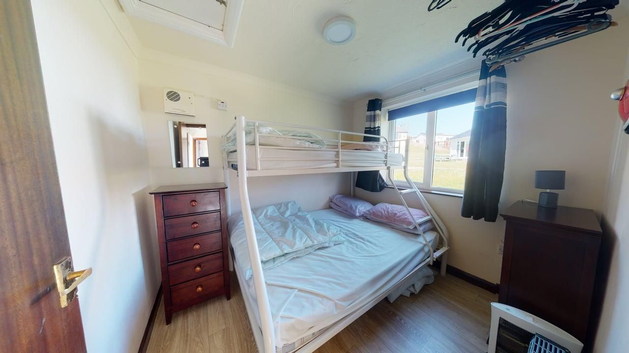 Bedroom 2 - One double bed with single bed above, hanging rail and chest of drawers.