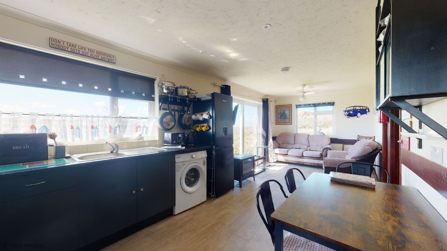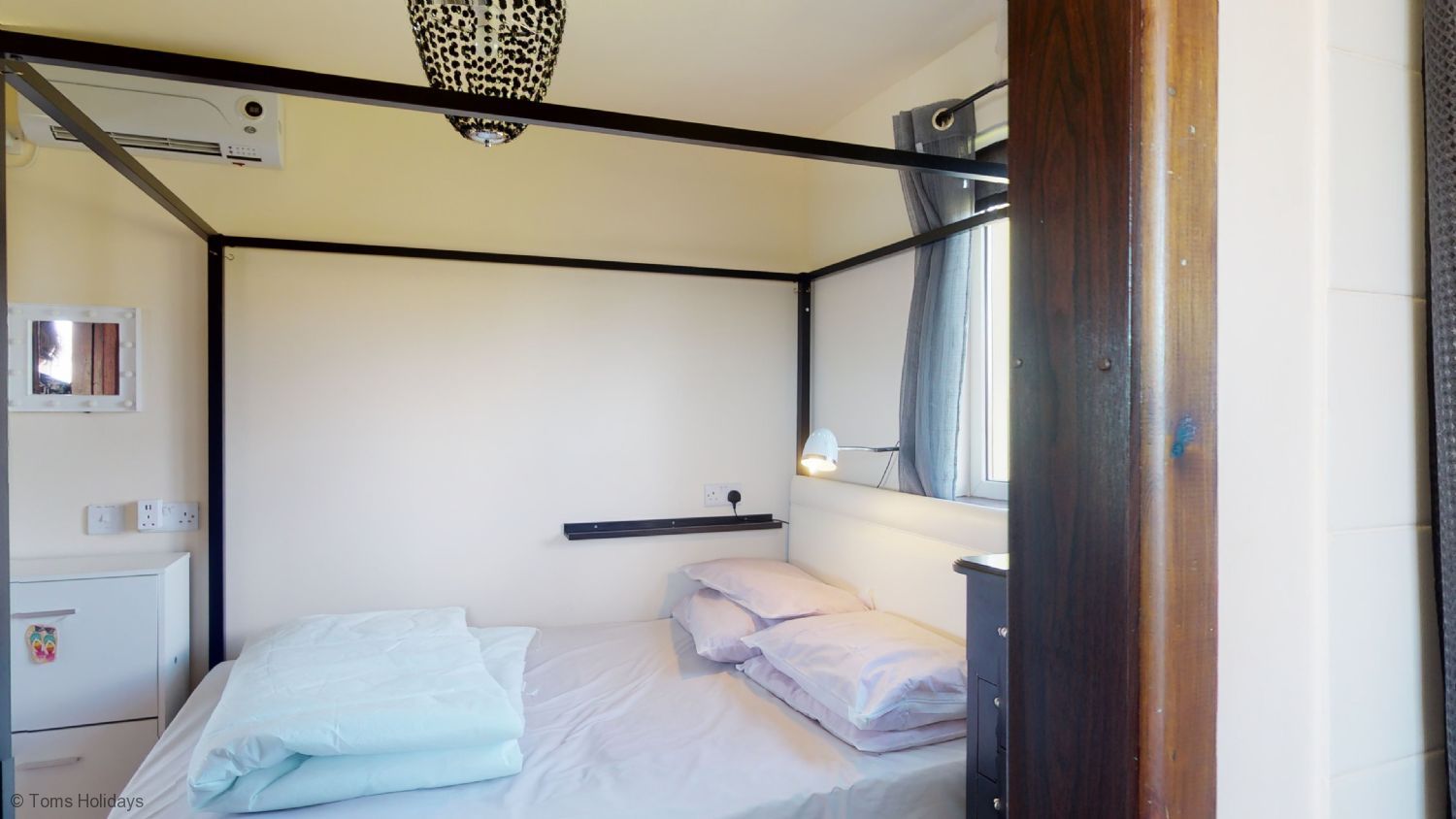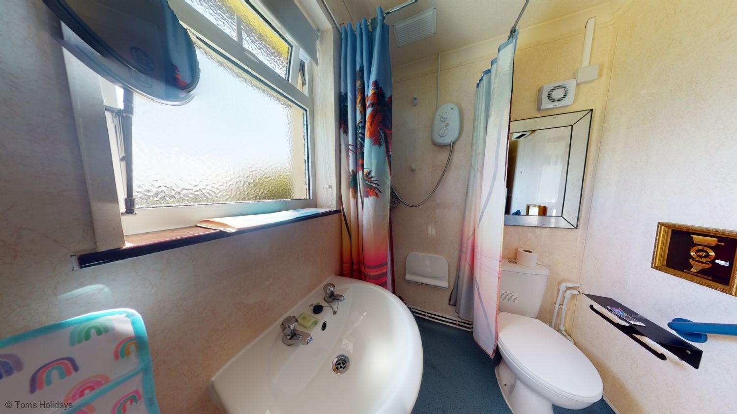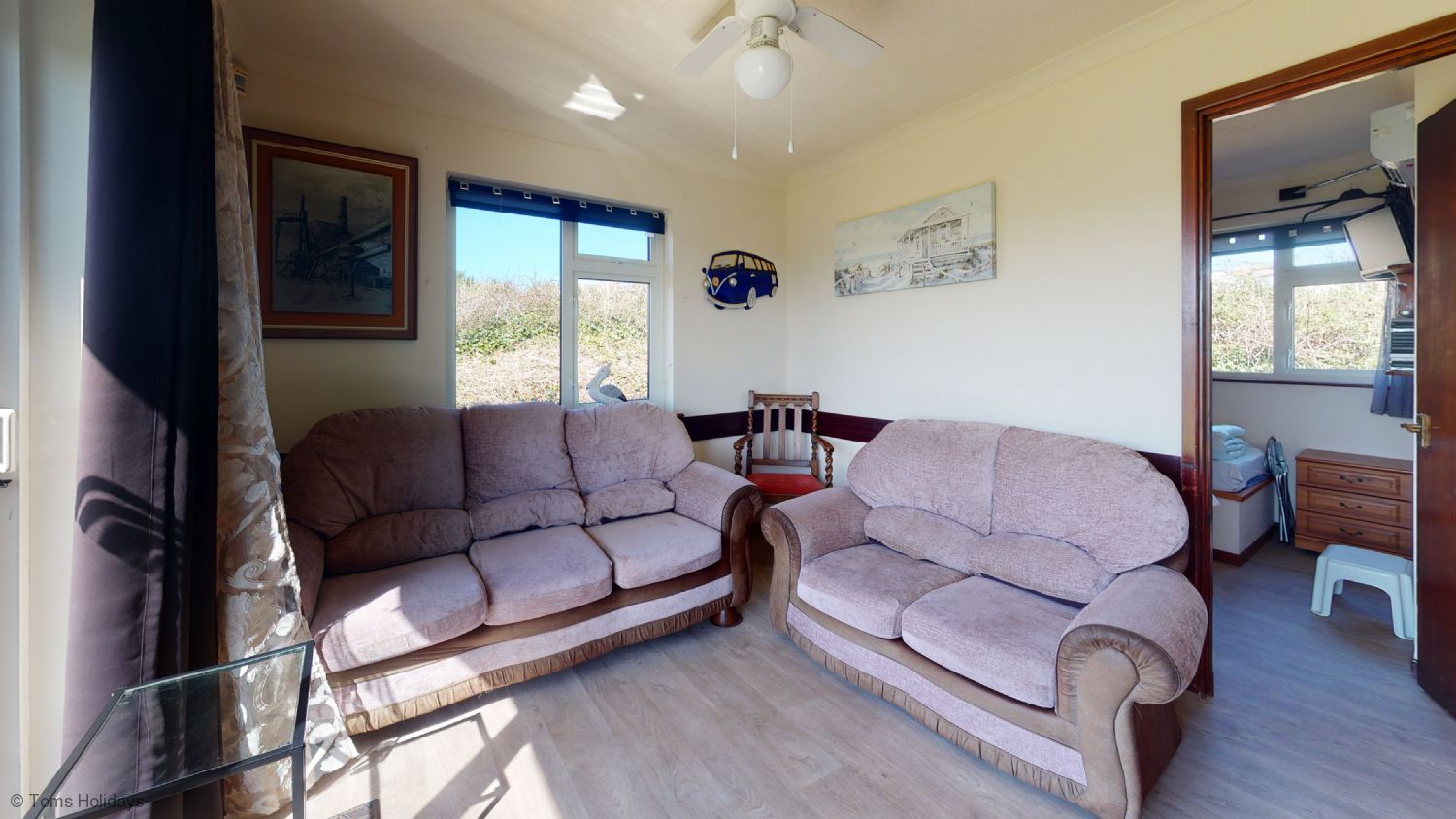 Bedroom 1 - Double four poster bed and en suite shower room including basin and WC. Wall heater, vinyl flooring with clothes hanging space. Bedroom 2 - Double bed. Wall heater, vinyl flooring with clothes hanging space. Bedroom 3 - Twin beds. Wall heater, vinyl flooring. Lounge - with Two 3 seater sofas, 22" HD digital LCD TV, large patio doors. Freestanding fan to cool you on hot days! Diner/Kitchen - inc. split oven and ceramic hob, oven self clean and eye level with grill, extractor, air fryer, LARGE frost free fridge / freezer, washing machine, microwave, dining table and chairs. Wet Room - with shower & fitted shower seat, electric towel rail, basin and WC.