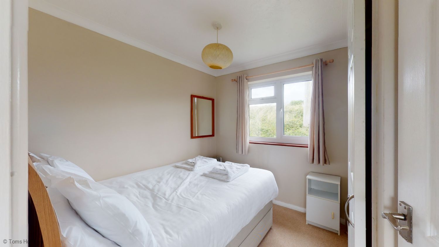 Bedroom 2 - 2 single beds, fitted wardrobe, chest of drawers.