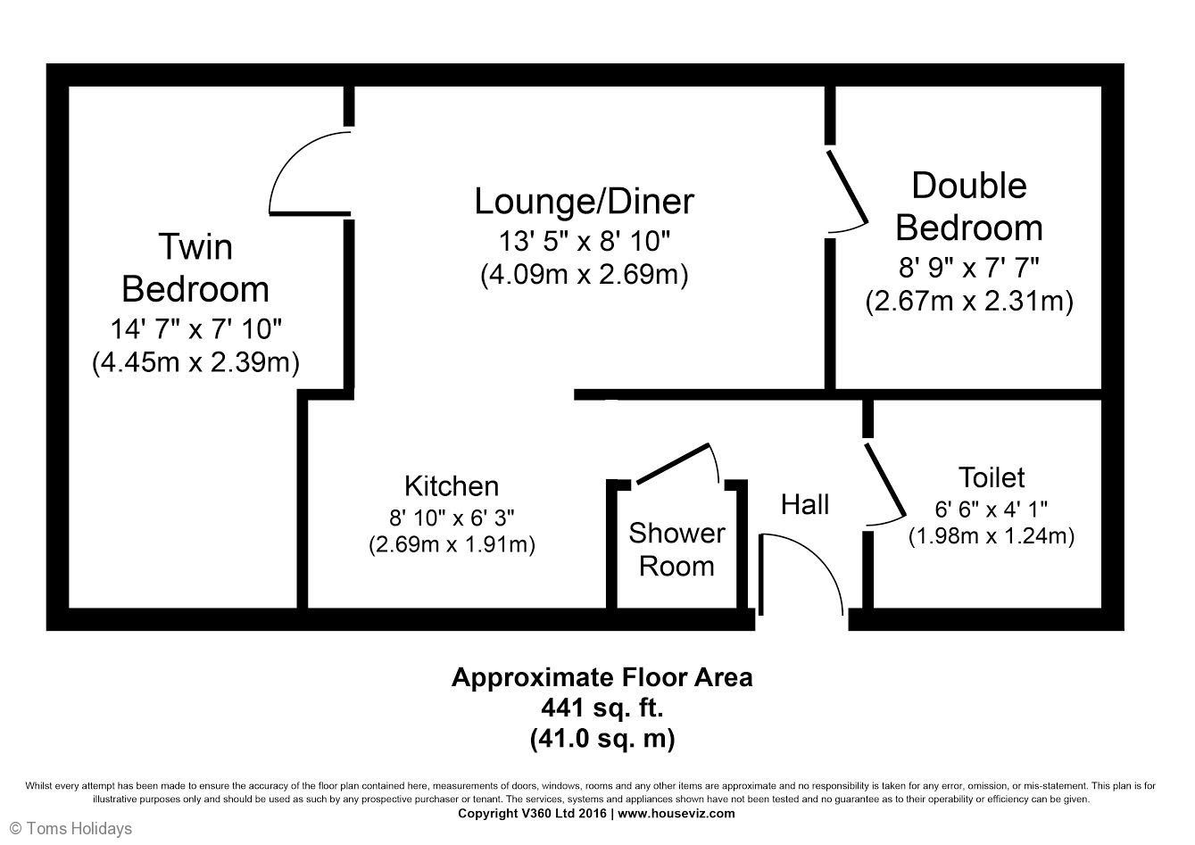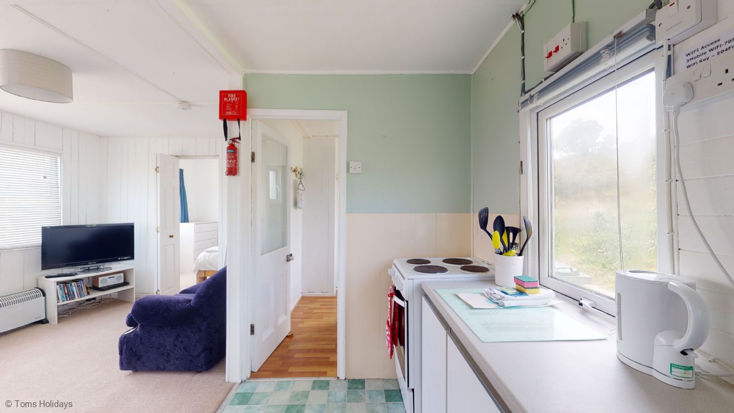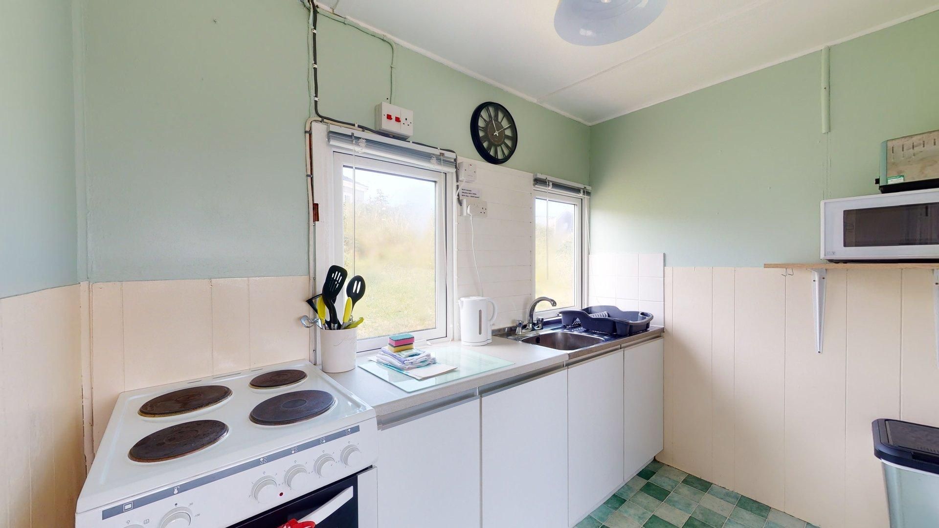 Lounge / Diner /Kitchen - Open plan space with fully equipped kitchen, dining table and chairs, sofa TV. Bedroom 1 -Double bed storage space with views over the park. Bedroom 2 - Twin beds, storage space with views over the park. Shower room - shower cubicle, WHB and WC.