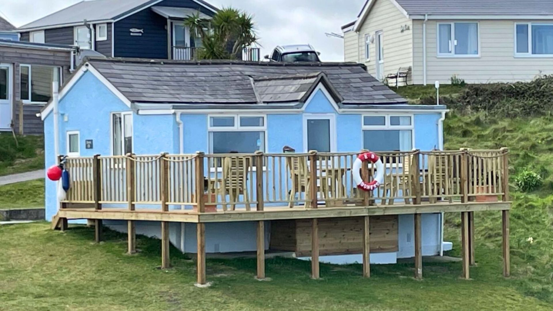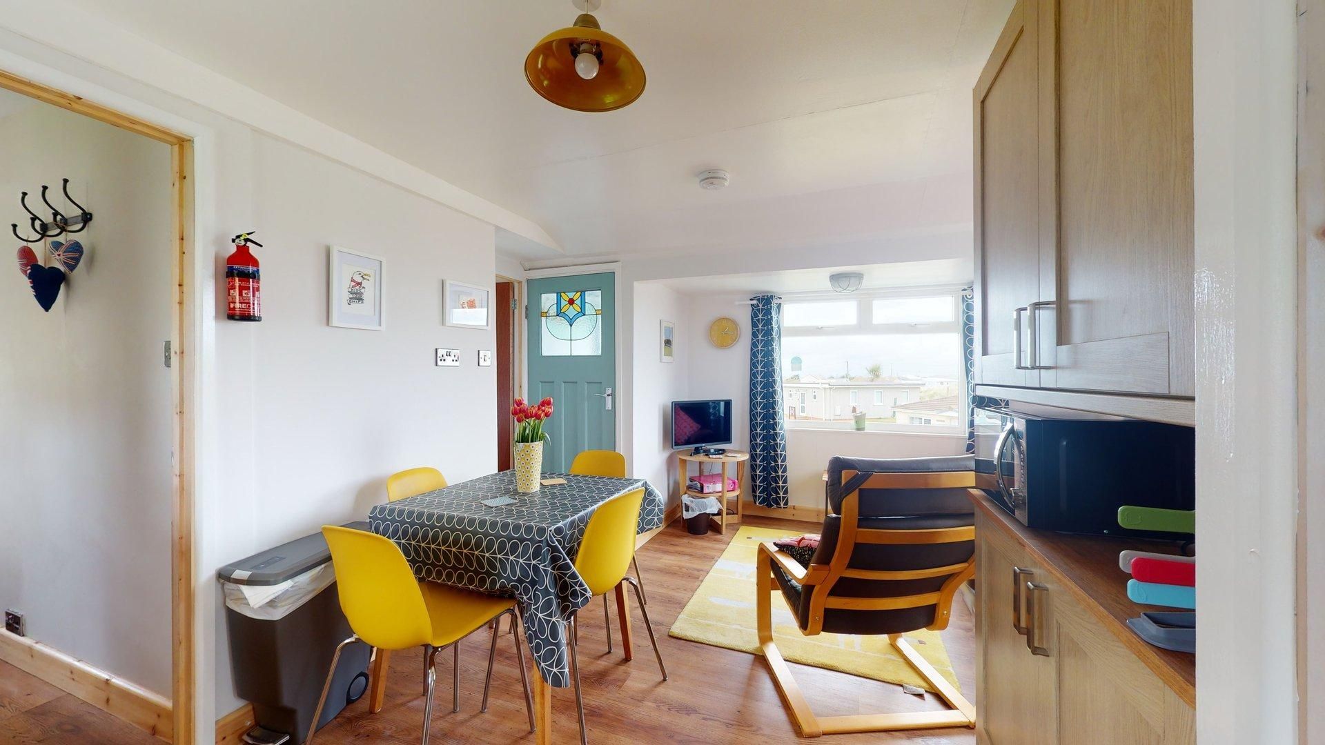 Colourful and full of character, Boness is a warm and welcoming beach chalet which enjoys a slightly elevated position within the Riviere Towans holiday park. With views towards the Atlantic from the enclosed balcony and grassy dunes all around, Boness is the perfect escape for couples and friends to enjoy this stunning stretch of the North Cornish Coastline.