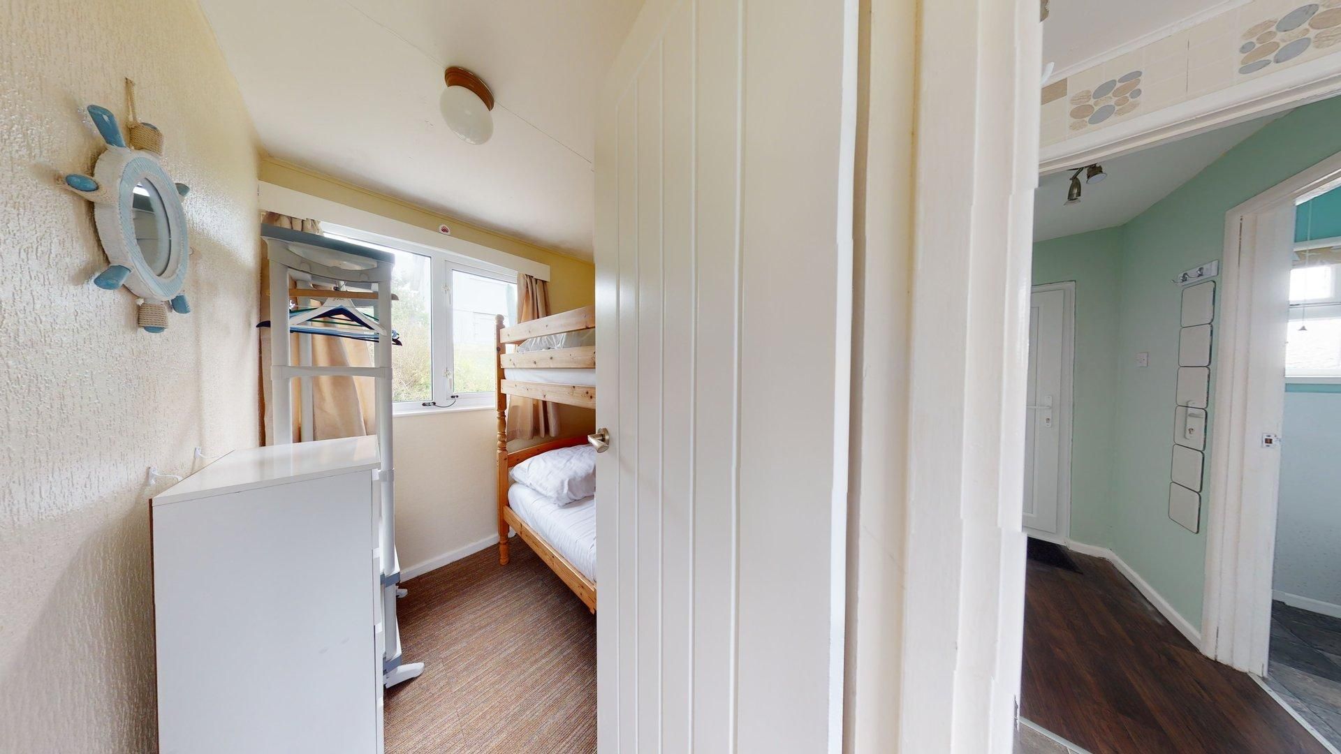 Bedroom 3 - 1 set of full size pine bunk beds, chest of drawers. Window to side overlooking rear of property.