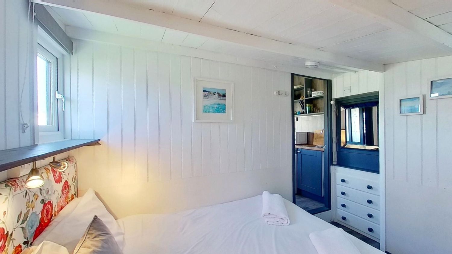Refurbished to a high standard throughout, with an en-suite shower room and underfloor heating, a well equipped kitchen and living space, Roskear has become a characterful, historic and modern beach chalet!