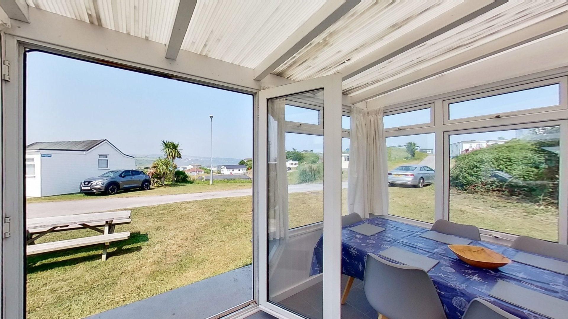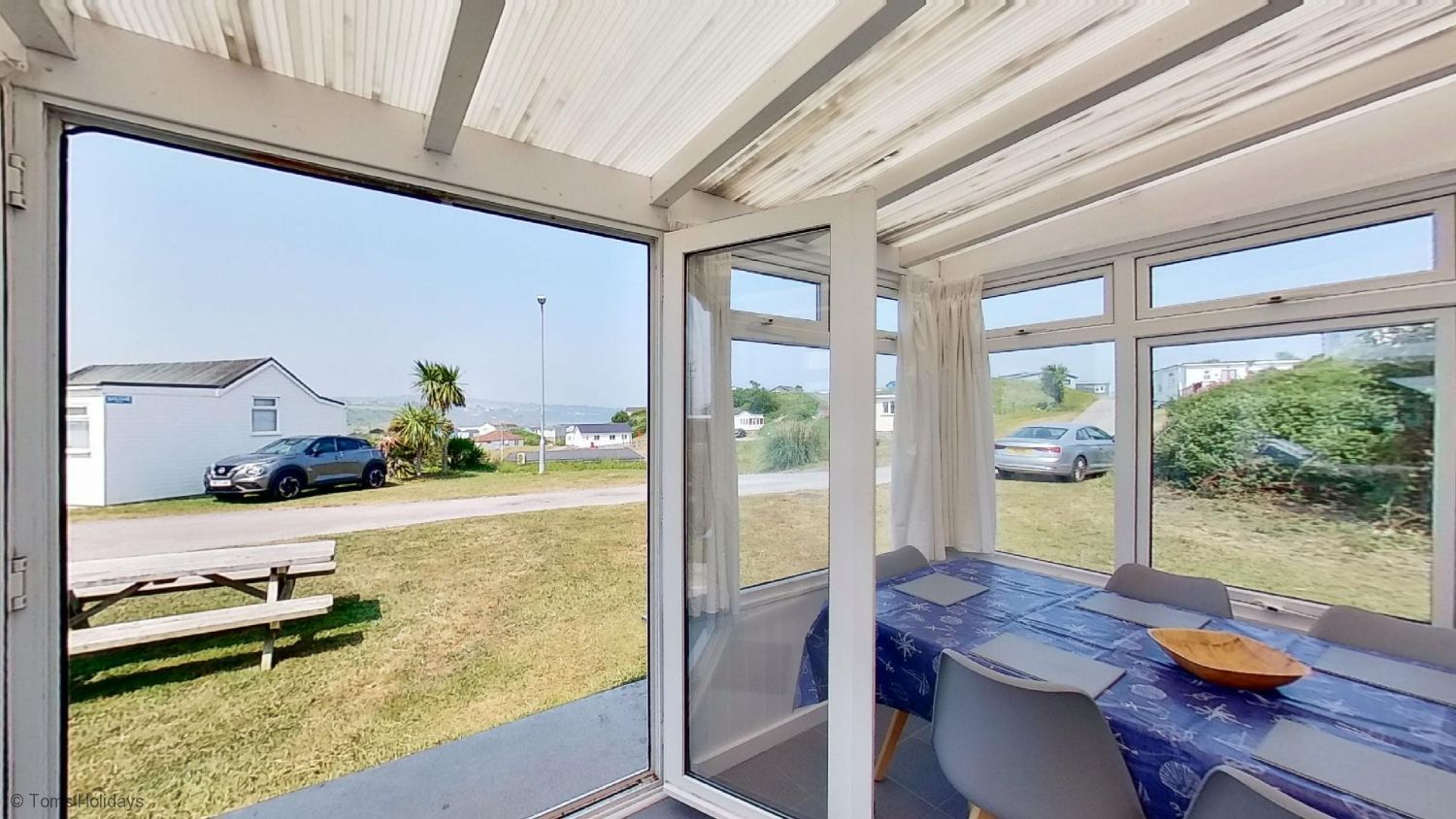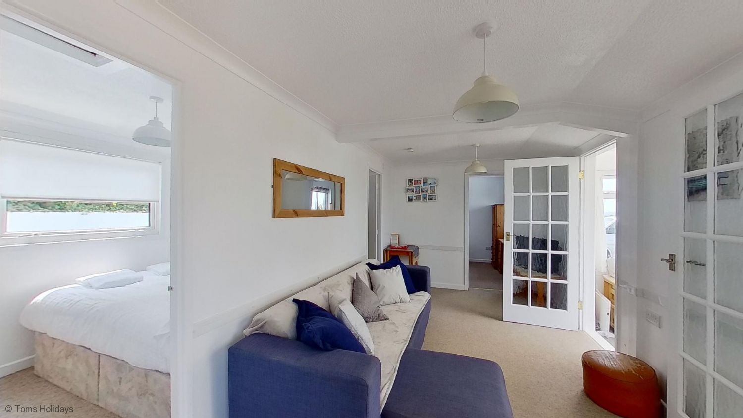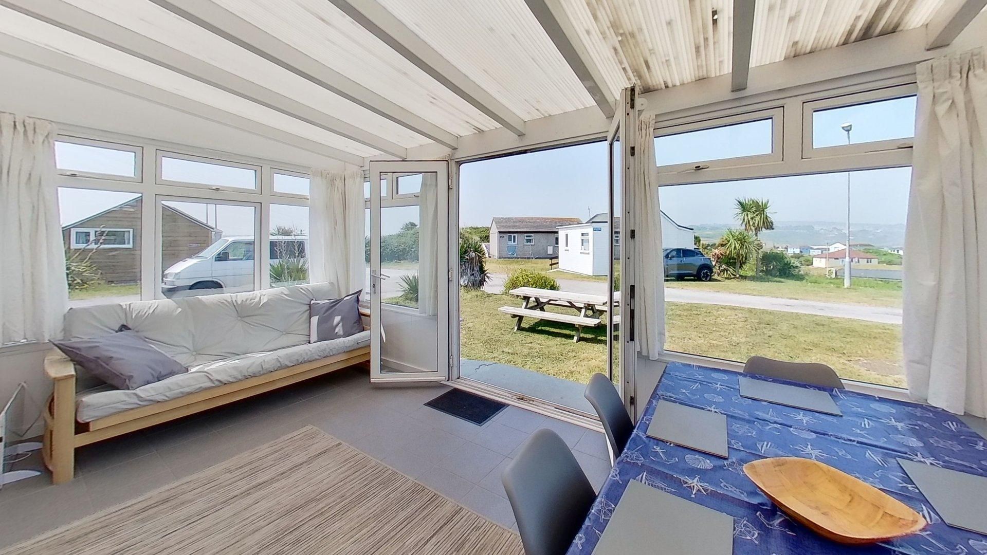 With three bedrooms (one double, one twin and one bunk), well equipped kitchen, lounge and bright conservatory with dining space and double doors which open onto a grassy outdoor space with picnic table and views towards Lelant and Hayle estuary, Blue Haze is a great family chalet in a perfect location for exploring St. Ives Bay and West Cornwall.