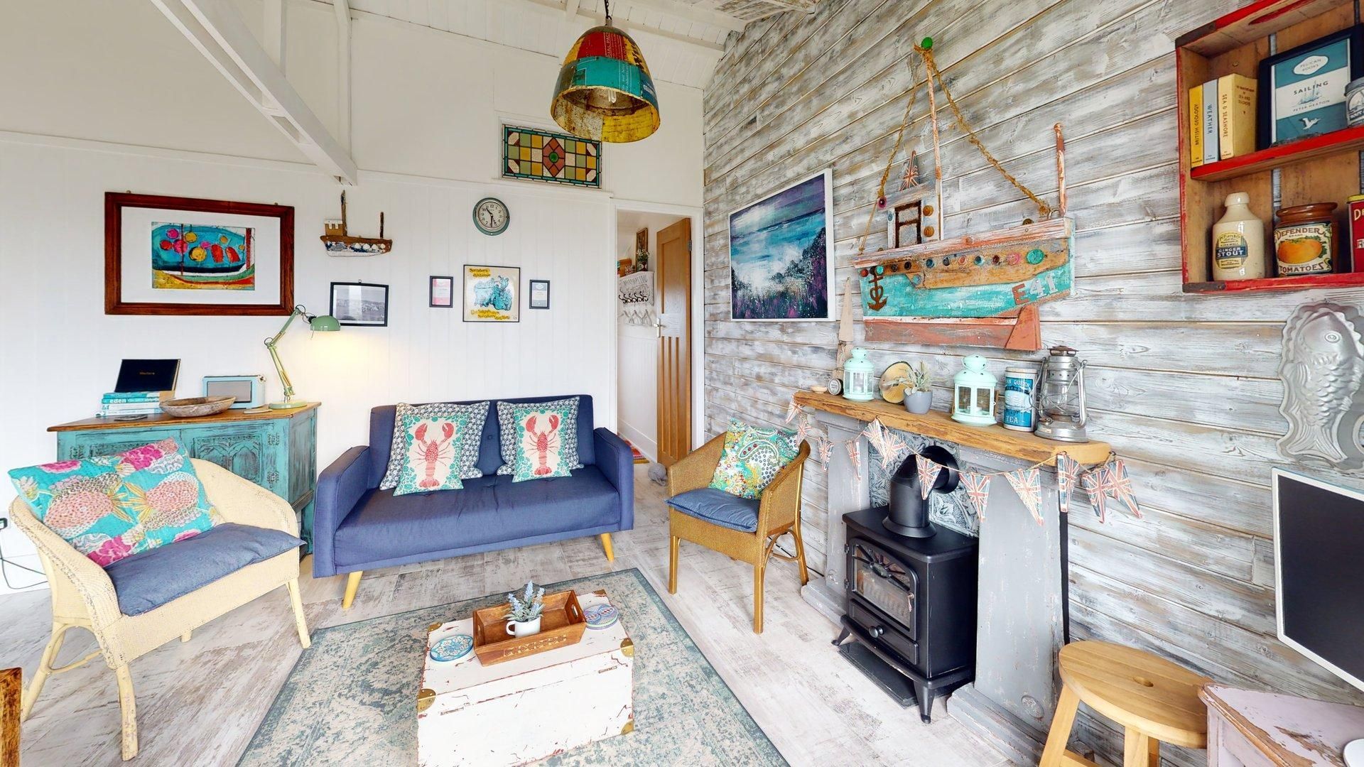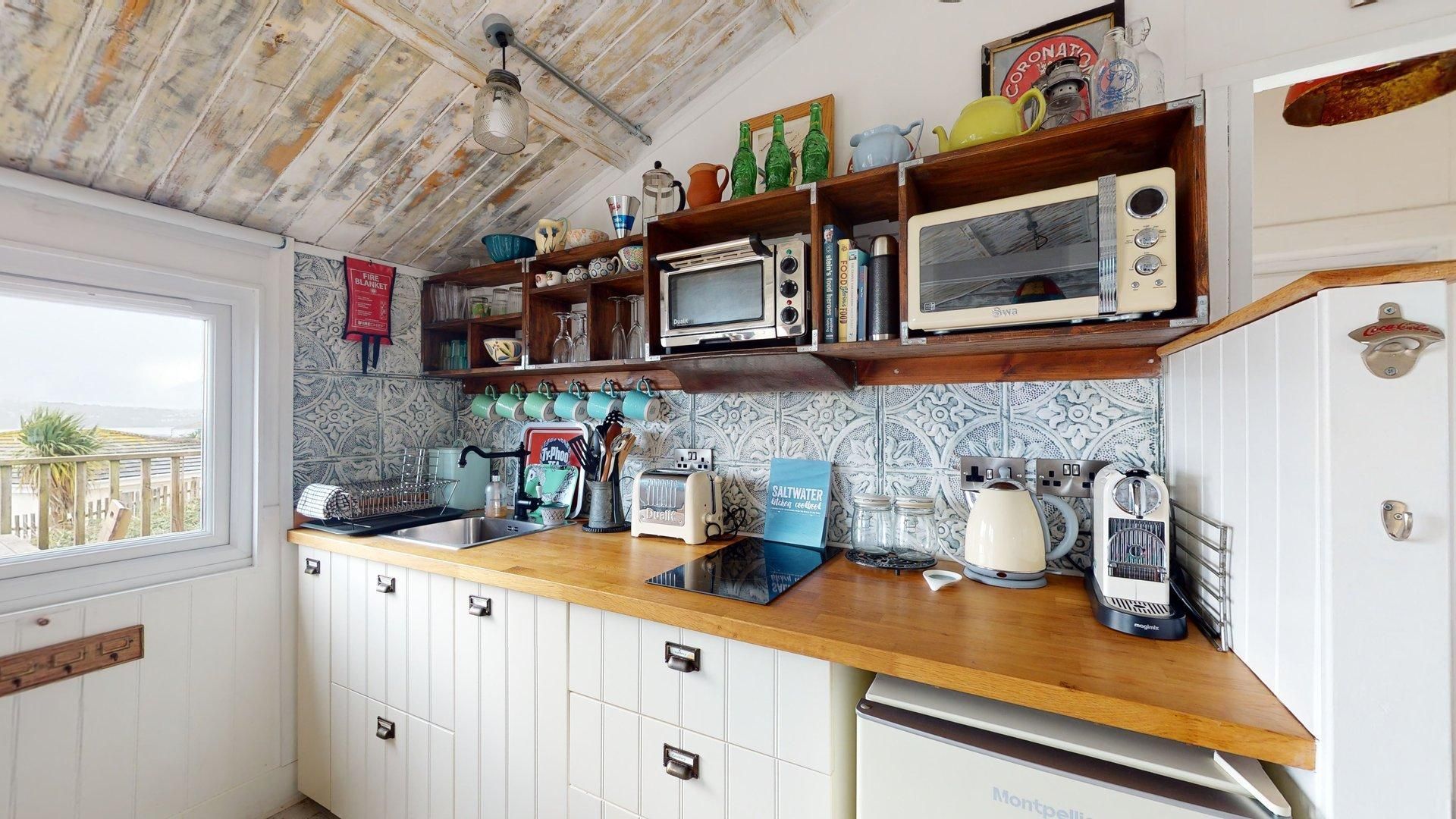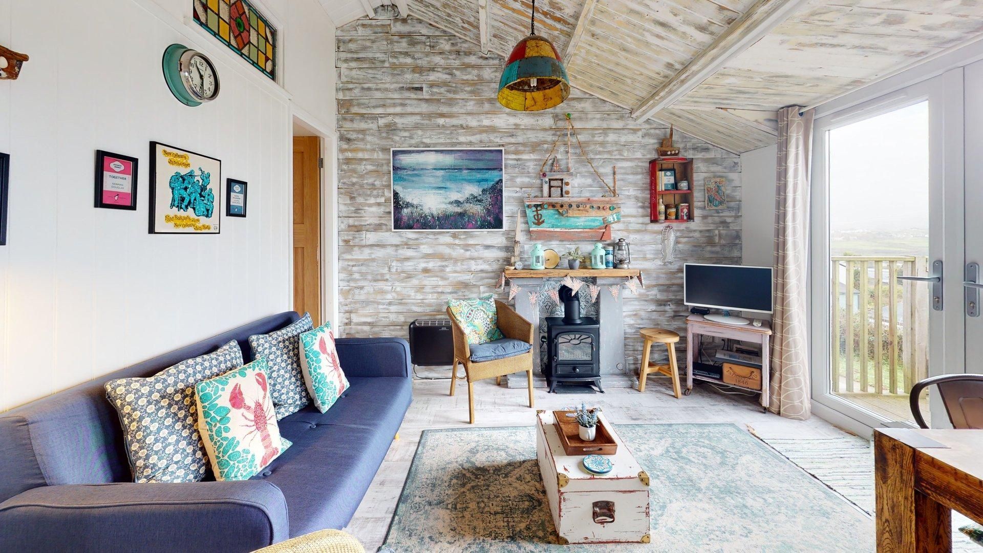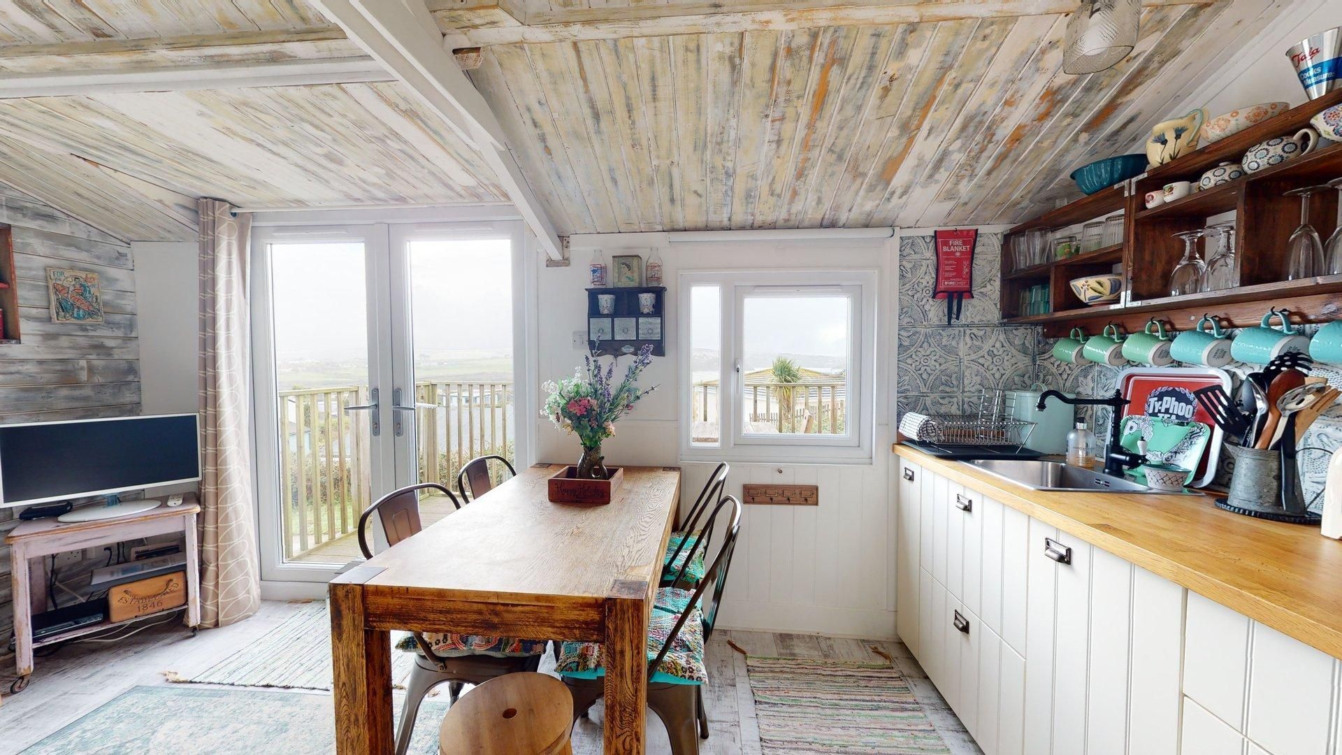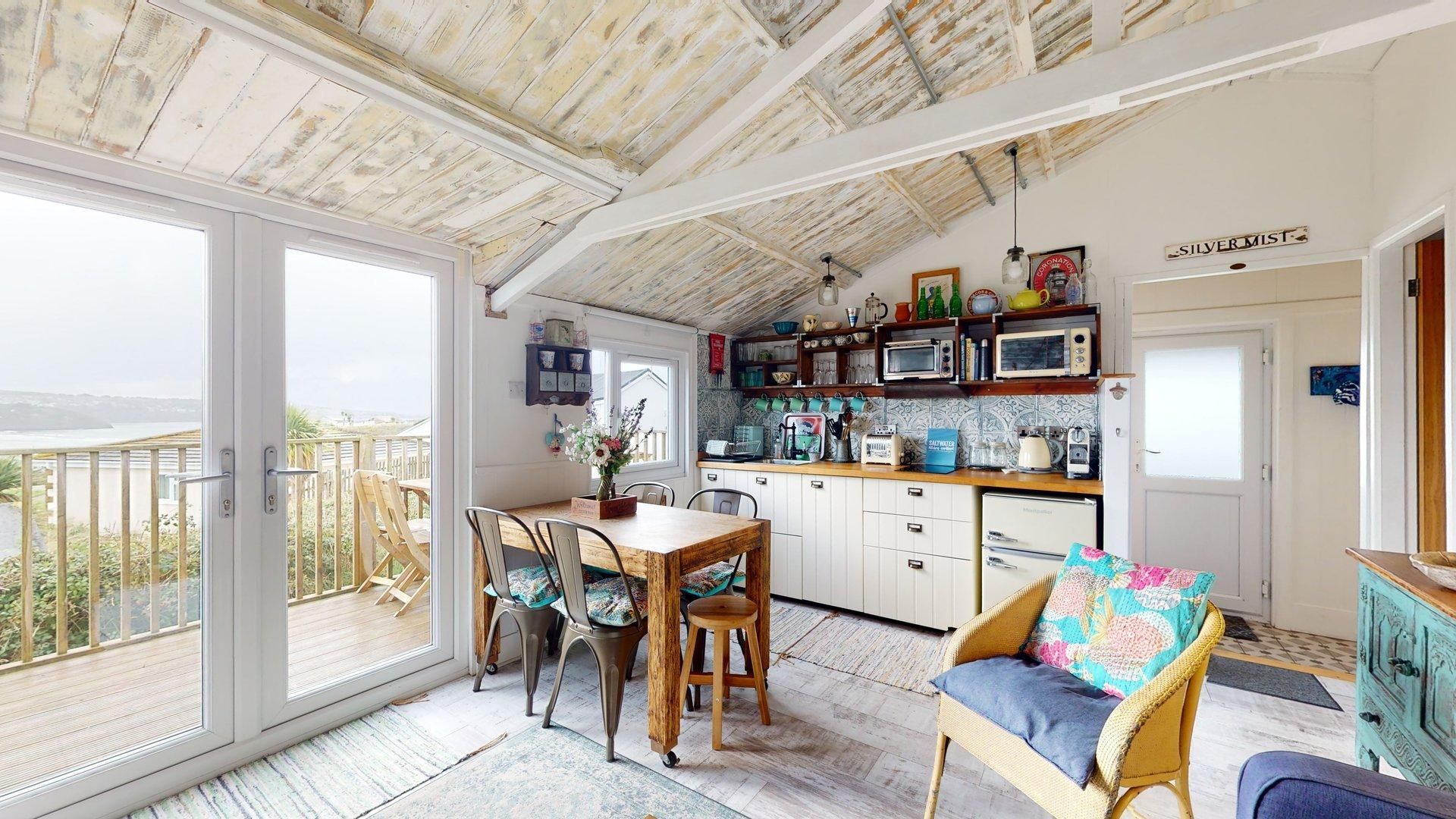 Silver Mist, a charming beach chalet, is gracefully perched high on the dunes, offering a picturesque views that stretch across the landscape. Silver Mist provides a splendid vantage point from which to admire the views over the countryside and the mouth of St Ives Bay. The tranquil ambience of this coastal retreat is further accentuated by its tasteful decor, which seamlessly blends with the beach chalet's surroundings. Exposed timber elements throughout the property enhance its rustic appeal, enveloping guests in a genuine beachside experience. Silver Mist exudes a captivating charm that invites relaxation and appreciation for the stunning coastal landscape of West Cornwall.