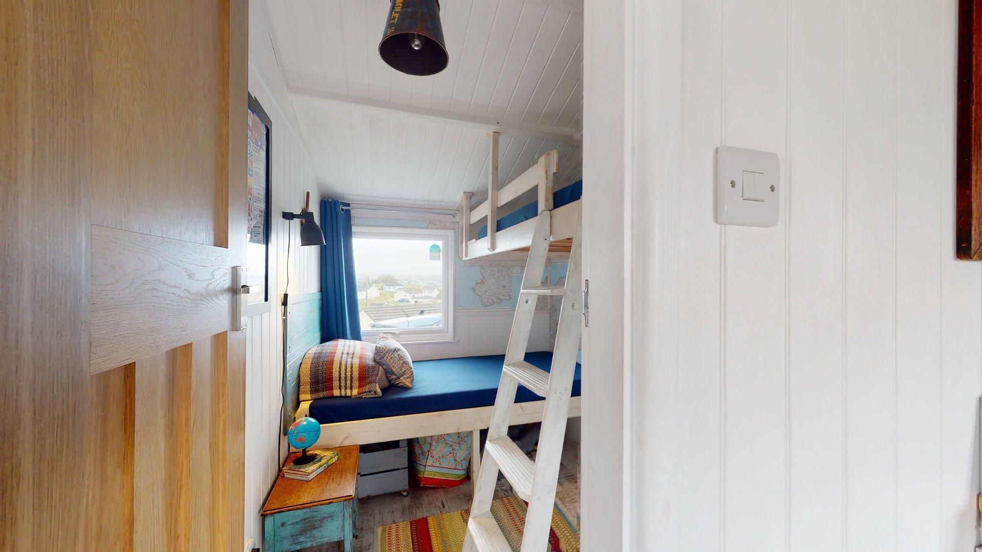 Living/Kitchen Dining Area- Open plan living area with a fully equipped kitchen area. Comfy sofa and two comfy chairs, dining table and rather spectacular feature wall. Bedroom 1- Double Bed, bedside table/nook, chest of drawers and hanging space. Bedroom 2- Bunk room with bedside table. Views over the park. Shower Room- Shower cubical and basin (separate WC) Other Features- Enclosed veranda with outdoor seating. Elevated views to the rear of the park over to St Ives Bay and Lelant.