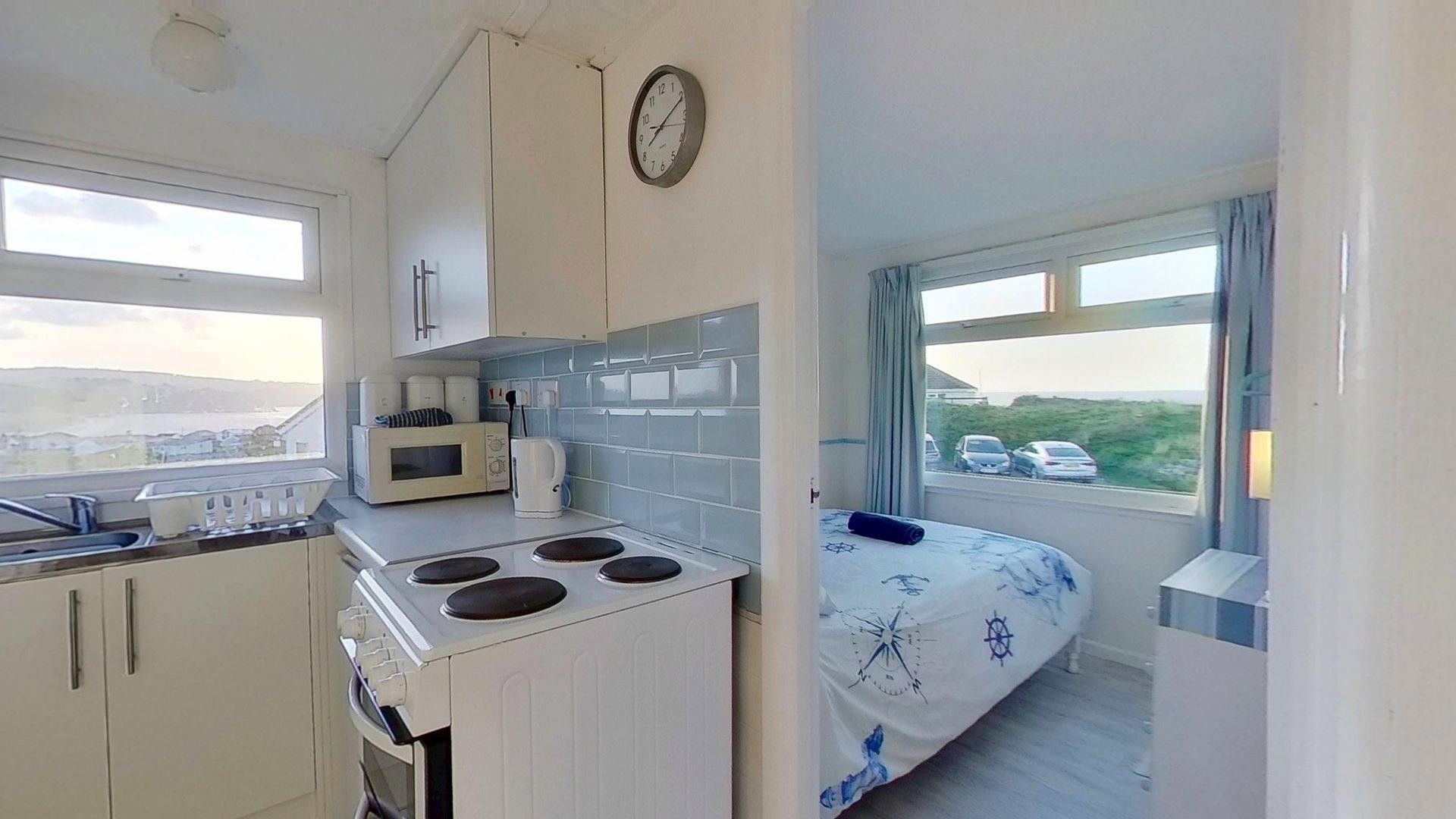 Kitchen - Again with super views and includes a refrigerator, microwave and an electric cooker.