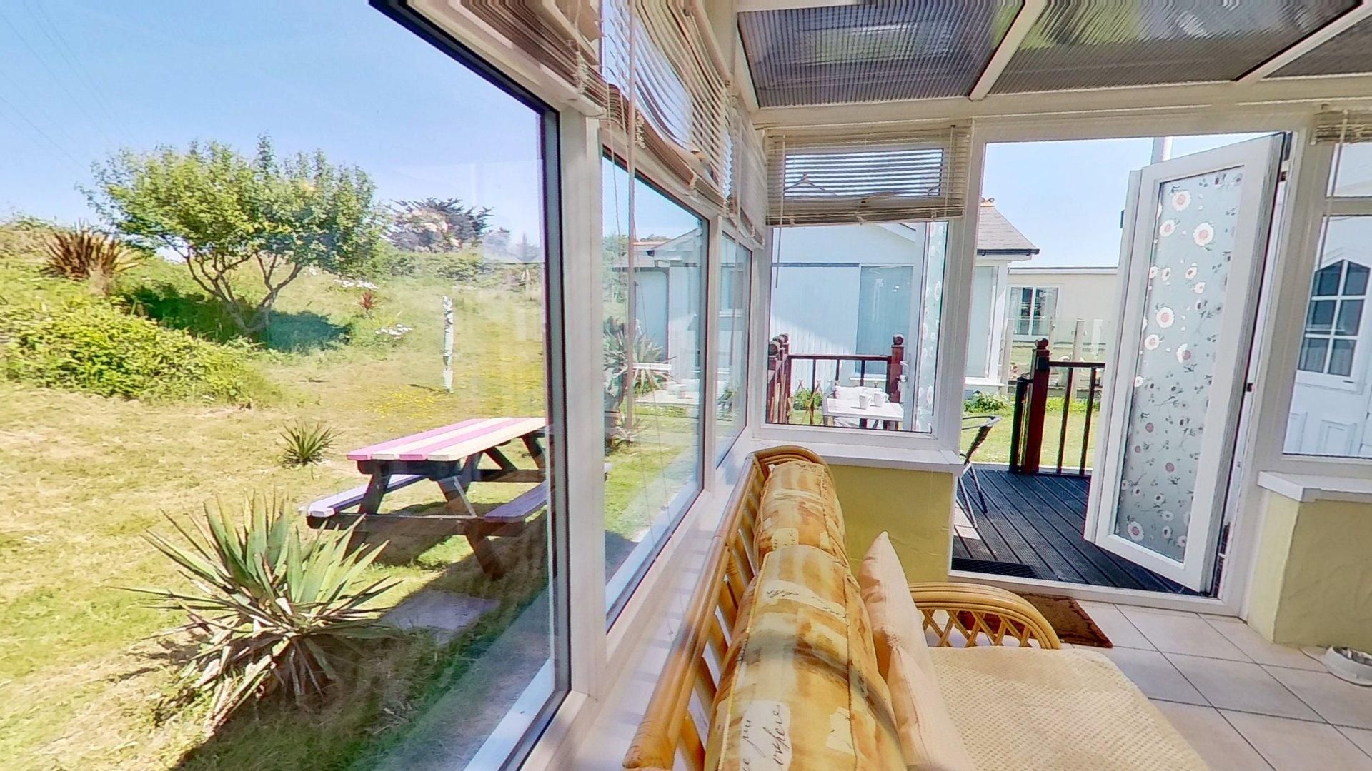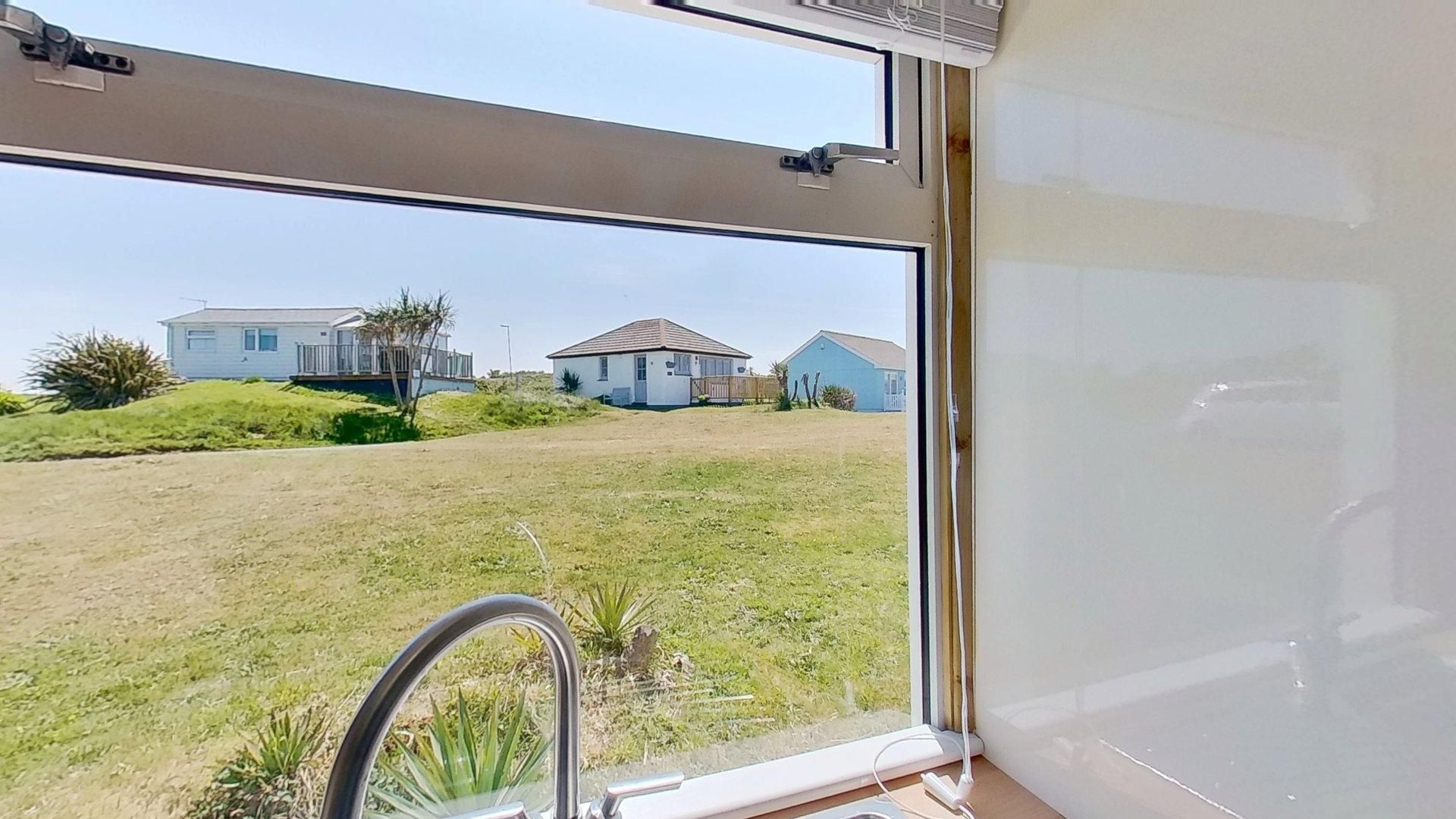 Living Area - A bright and airy conservatory-style living area with a sofa, easy chairs and a TV. This room leads out to the enclosed deck. Kitchen/Dining Area - The modern kitchen has fitted units, a fridge/freezer, electric oven and hob and a microwave. There is a dining table and chairs. Bedroom 1 - To the front of the chalet overlooking the park, with a small double bed. Bedroom 2 - This room has bunk beds. Shower Room - With a fitted shower cubicle, basin and WC. Outside - There is an enclosed deck to the rear of the chalet with a bistro table and chairs, plus a picnic bench on the grassy area beyond. Parking - Ample space for two cars on the grass directly outside the chalet.