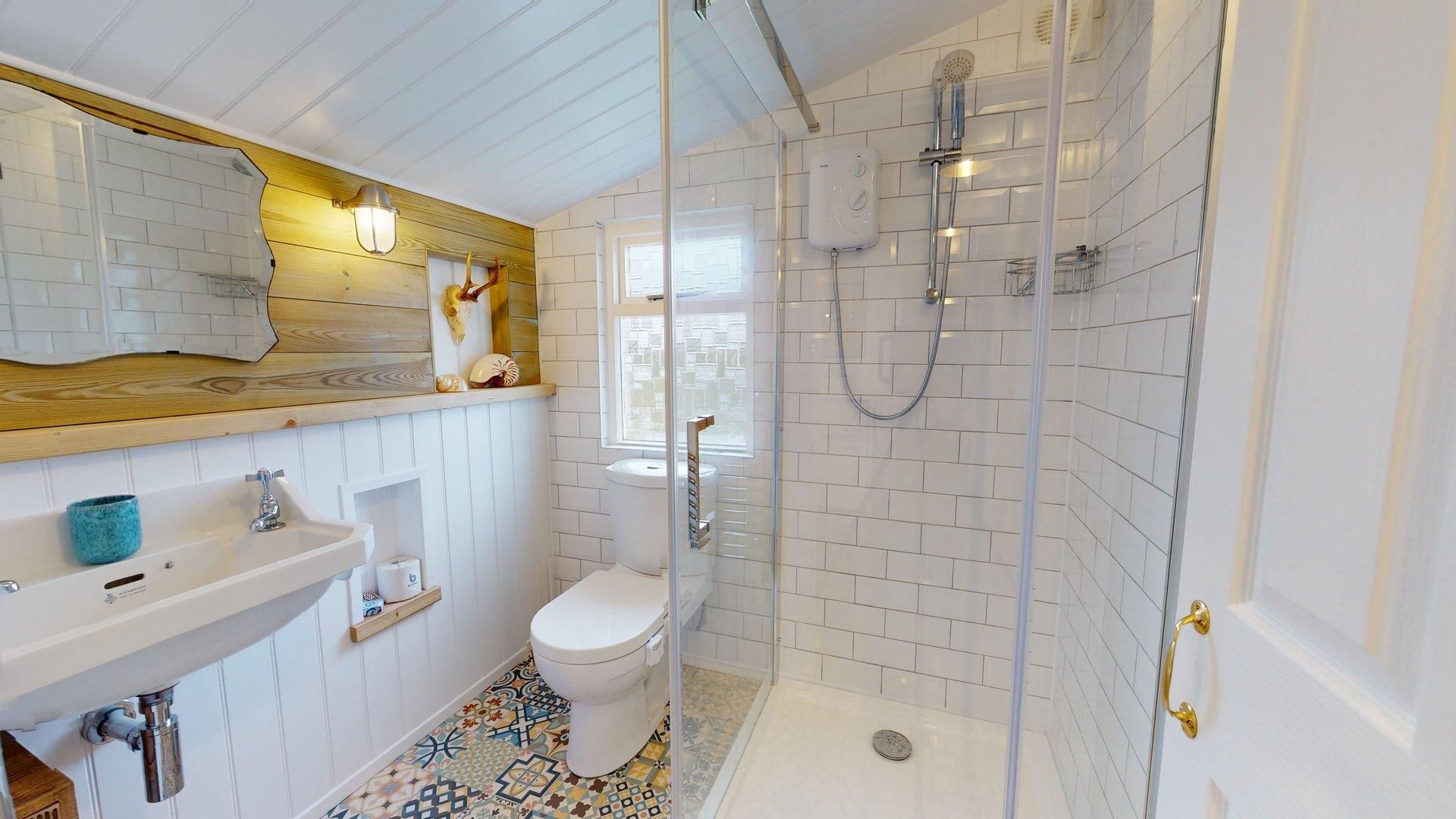 Shower Room - A walk-in shower, heated towel rail, W.C and basin.