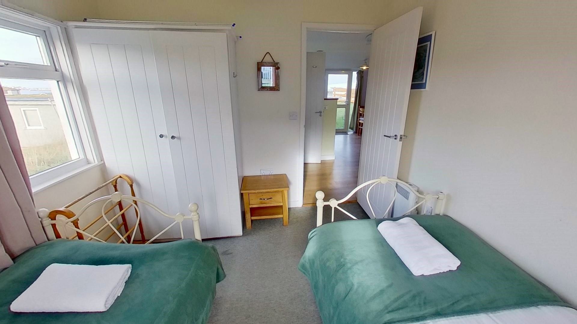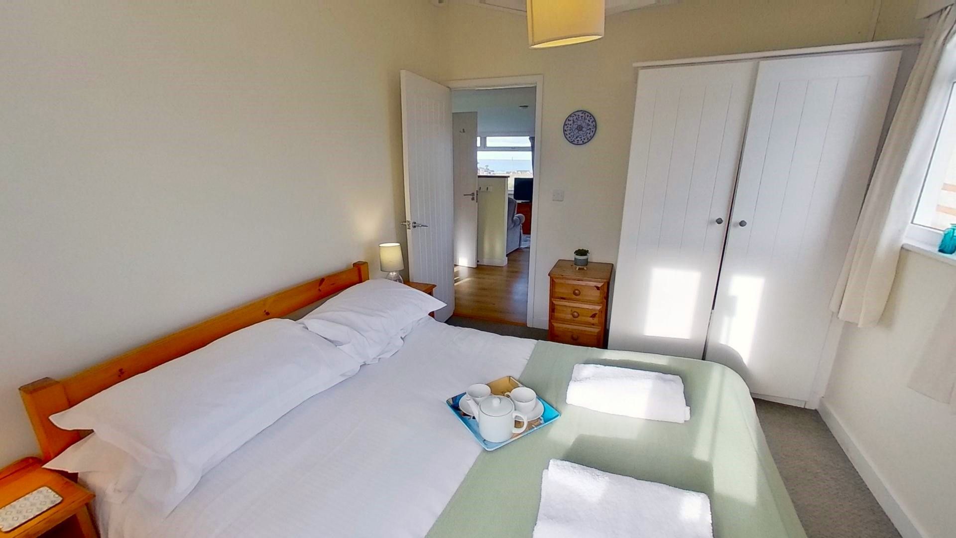 Bedroom 1 - With a double bed, wardrobe and views over the dunes.