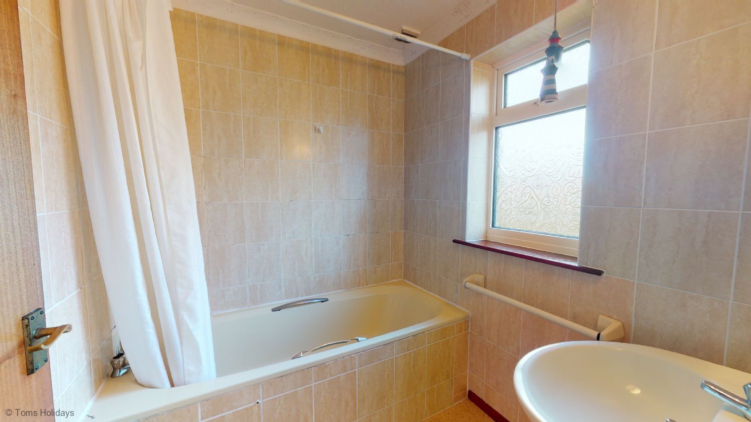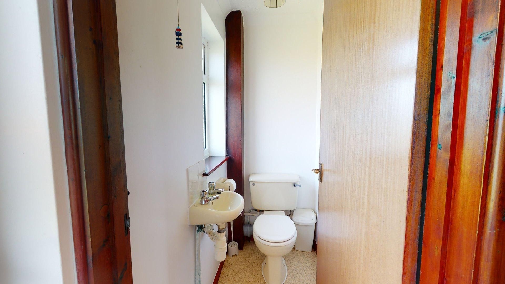 Bathroom - A bath with shower over, basin. Separate WC with basin.