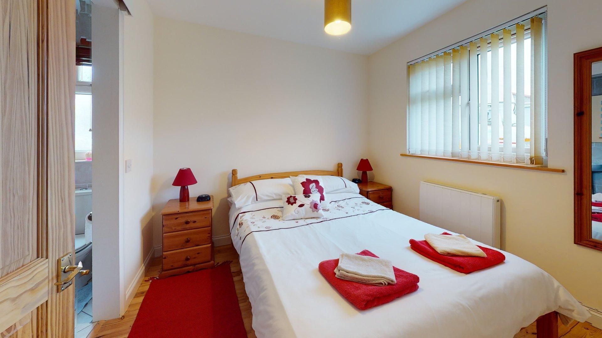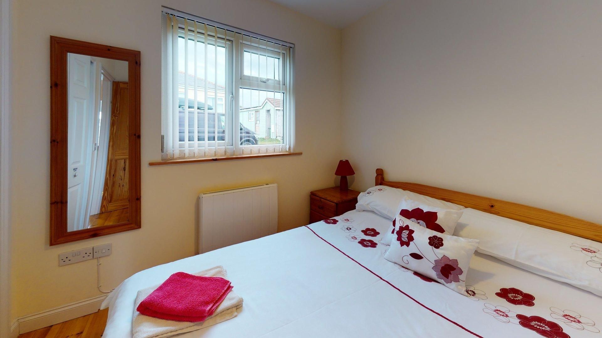 Bedroom 2 - One double bed, built-in wardrobe, bedside drawers.