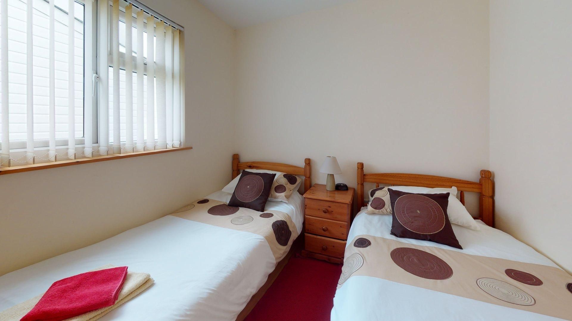 Bedroom 3 - Two single beds, wardrobe, bedside drawers.