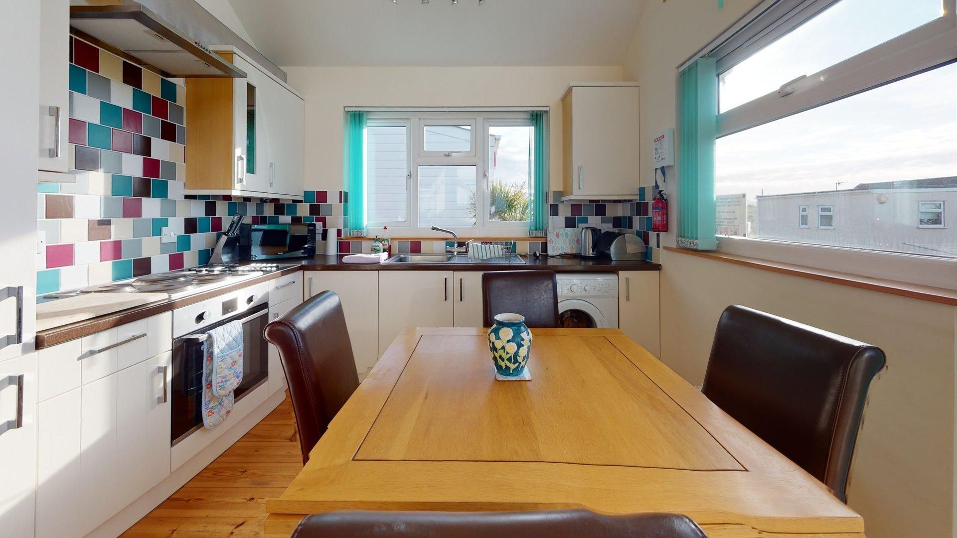 Hazebrook is a beautifully maintained, spacious holiday home with comfortable accommodation for up to six guests. Situated in a central position within the Riviere Towans chalet park, with sea views and adjacent parking.