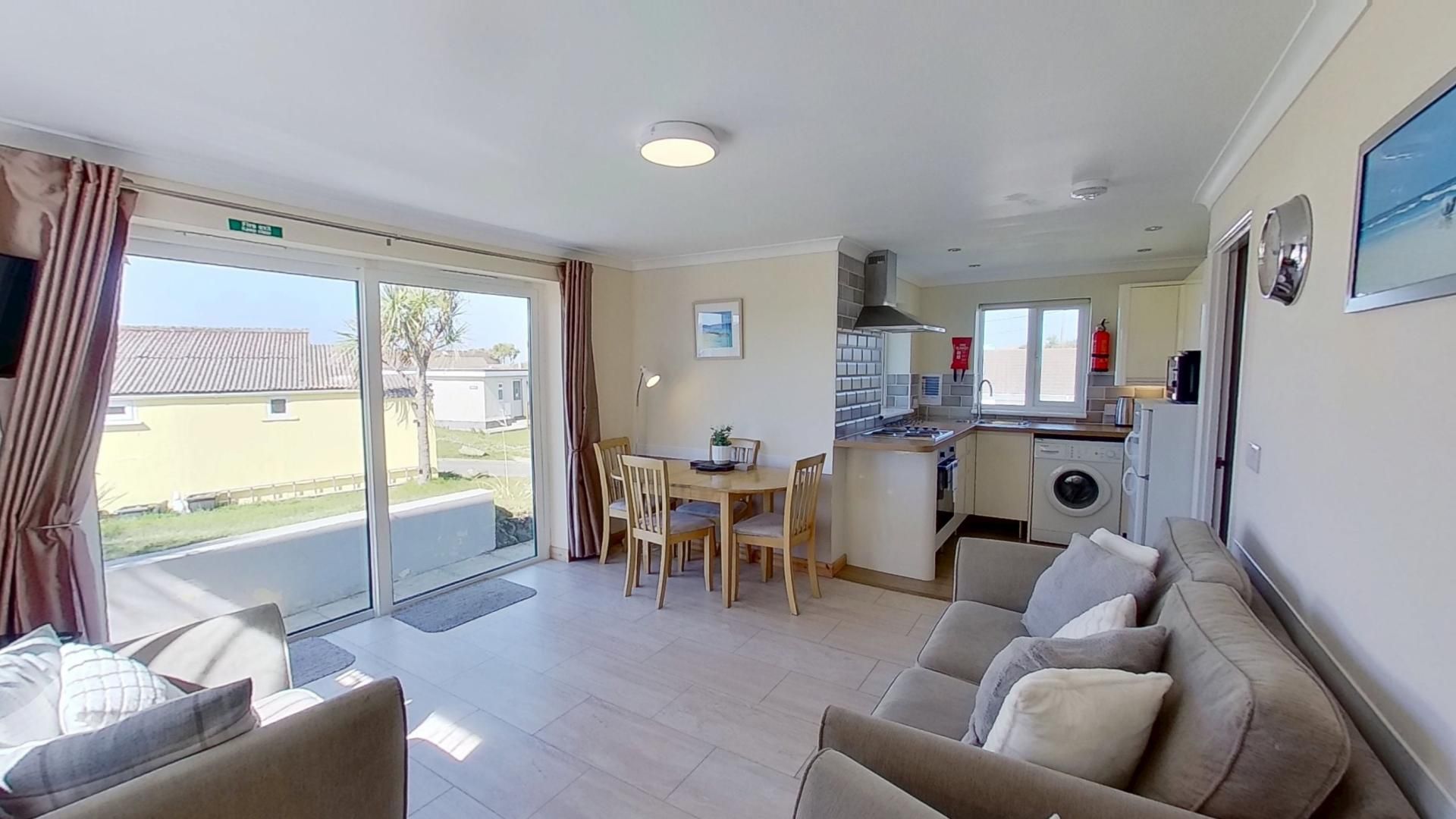 All the properties we manage are self-contained and self-catering. All the kitchen equipment you will require for your stay is provided in the property. All properties include a microwave, TV, iron and heating to name but a few of the basics. A large number also include washing machines but do check the property particulars above.The park is just outside Hayle at Riviere Towans on St Ives Bay. Set over forty acres with the properties nestled amongst the sand dunes and open grass areas with direct access onto the three miles of Hayle beach.Full linen and towels are included in the price of your holiday. (Beach towels not included) If two dogs are added to the booking, a £100 security deposit will be charged with the balance which will be refunded following your departure, providing everything is left in a satisfactory condition.