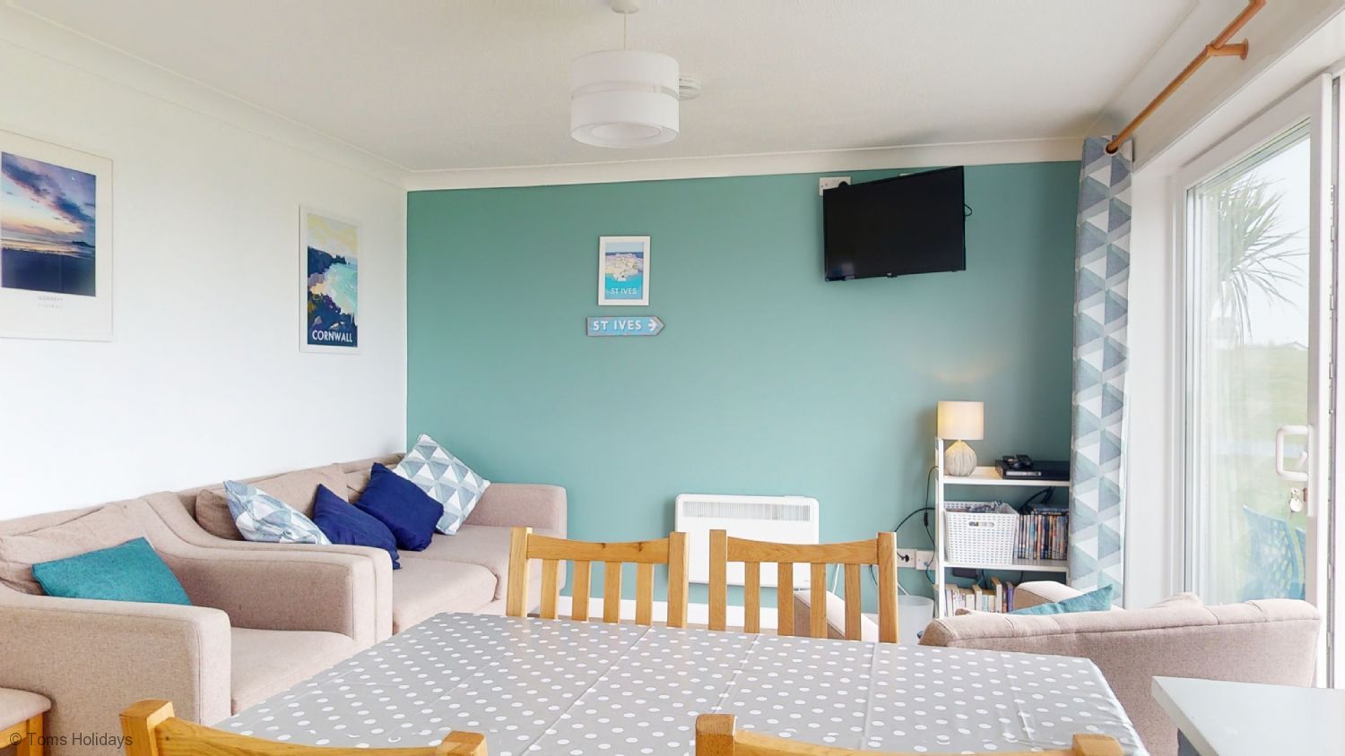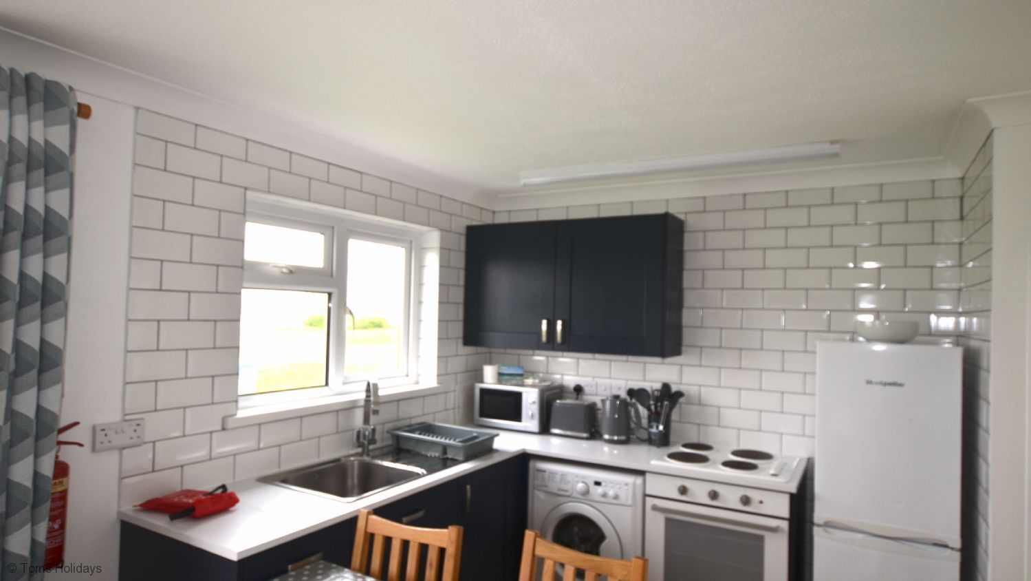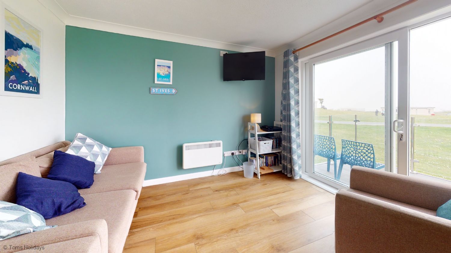 Kitchen - Well equipped modern kitchen with oven, hob, microwave & washing machine. Lounge - light and spacious lounge with french doors opening on to an enclosed deck. Views across the park towards St. Ives Bay. TV / DVD player. Bedroom One - King size bed with bedside table and lamp, storage and clothes rail. Bedroom Two - Super king size double bed with 2 x bedside tables and lamps and built in wardrobe storage space. Bedroom Three – Single bed, bedside table and lamp, built in wardrobe storage space. Bathroom – Electric shower, sink & W.C.