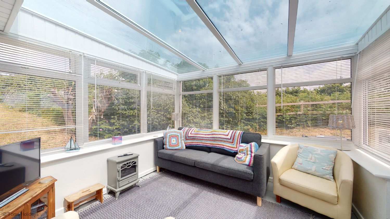 Bed 1 - One double bed, combination wardrobe and chest of drawers. Bed 2 - Two new single beds, 3 drawer bedside cabinet and combination wardrobe Bed 3 - Double bed, chest of drawers, hanging space and 24" TV with built-in DVD player with Freeview. Kitchen/Diner - Under sink water heater with water filter, full size cooker, fridge, freezer, washing machine and microwave. Dining table for 6, bench and chairs. Lounge/Conservatory - A 3 seater leather sofa, 2 tub chairs, (additional wicker chair in dining room), 32" smart TV and DVD player with Freeview. Shower Room 1 - Fitted shower cubicle, hand basin, WC, heated towel rail Second WC - WC and hand basin. Outside - Decked area with wooden table for 6 and, to the side of the chalet a picnic bench to seat 6. Useful information - Dedicated WIFI, provided by the owner.