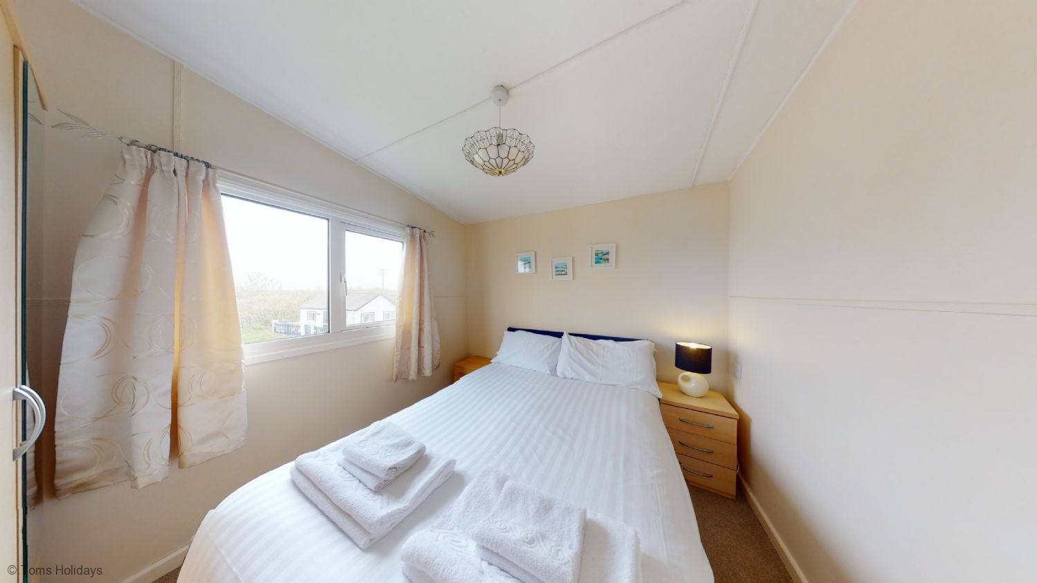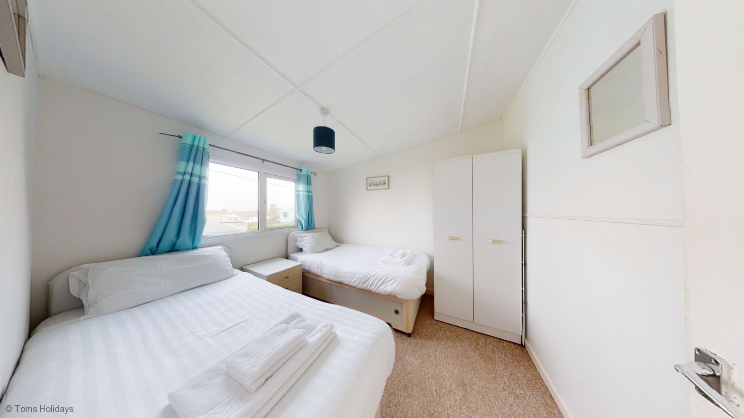 Bed. 1 - One double bed, wardrobe, chest of drawers. Bed. 2 - Two single beds, wardrobe, chest of drawers, sea views. Bed. 3 - One Single bed, chest of drawers Lounge/Diner - 3 piece suite, dining table and chairs, T.V., and sea views. Kitchen - Fitted units, cooker, fridge freezer, microwave, washing machine, heated towel rail. Shower Room - Fitted shower cubicle, wash hand basin. seperate W.C.