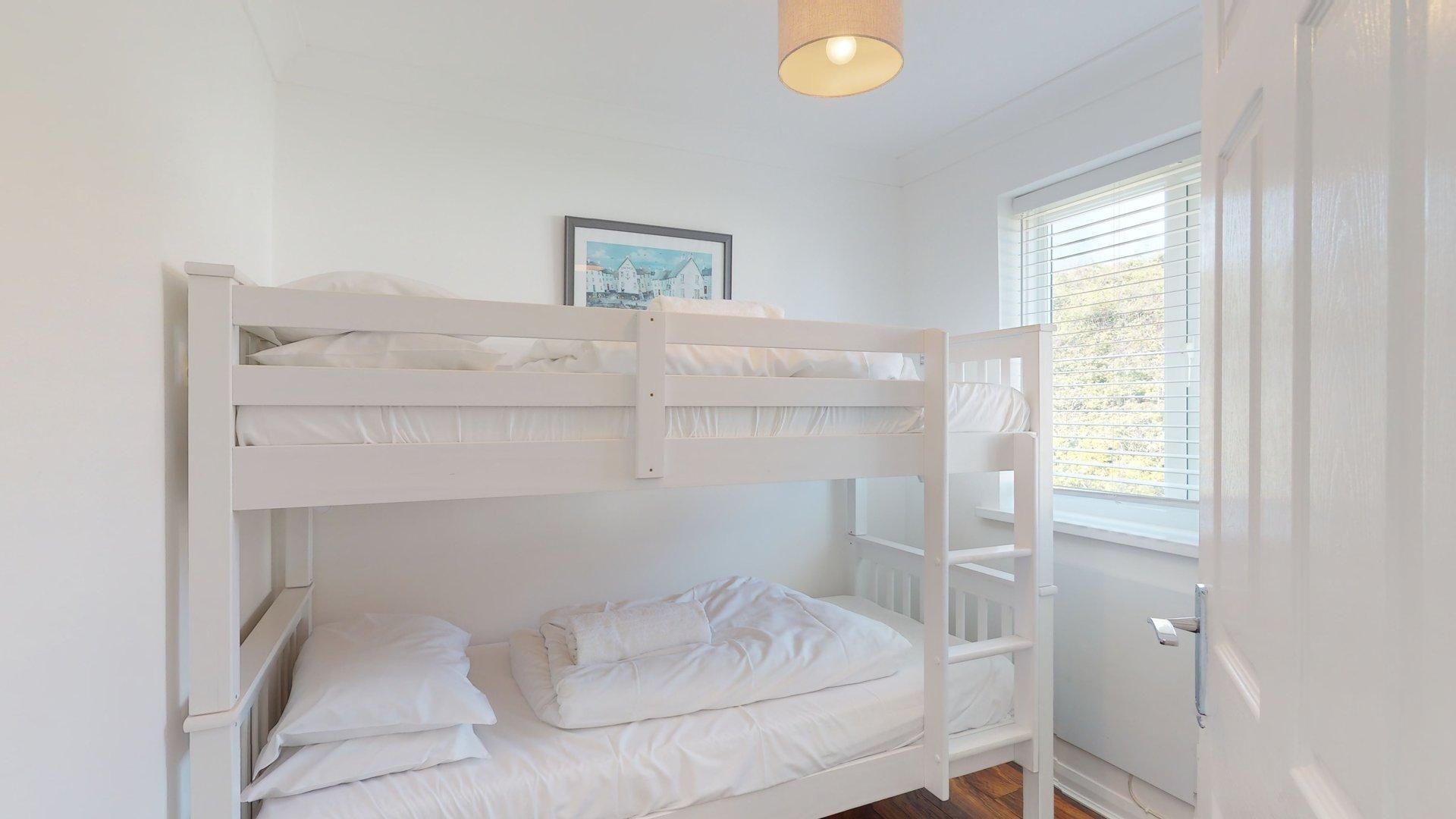 Rooms - Bedroom 1 - Double bed, bedside tables, chest of drawers, wardrobe. - Bedroom 2 - Twin beds, bedside table, chest of drawers, wardrobe. - Bedroom 3 - Bunk beds, bedside table, chest of drawers. - Kitchen / Breakfast Room - Washing machine, oven, hob, microwave. - Lounge - Three occasional chairs, three-seater sofa, table and four chairs (two extra folding if needed), TV. - Shower Room - Shower, sink, WC.