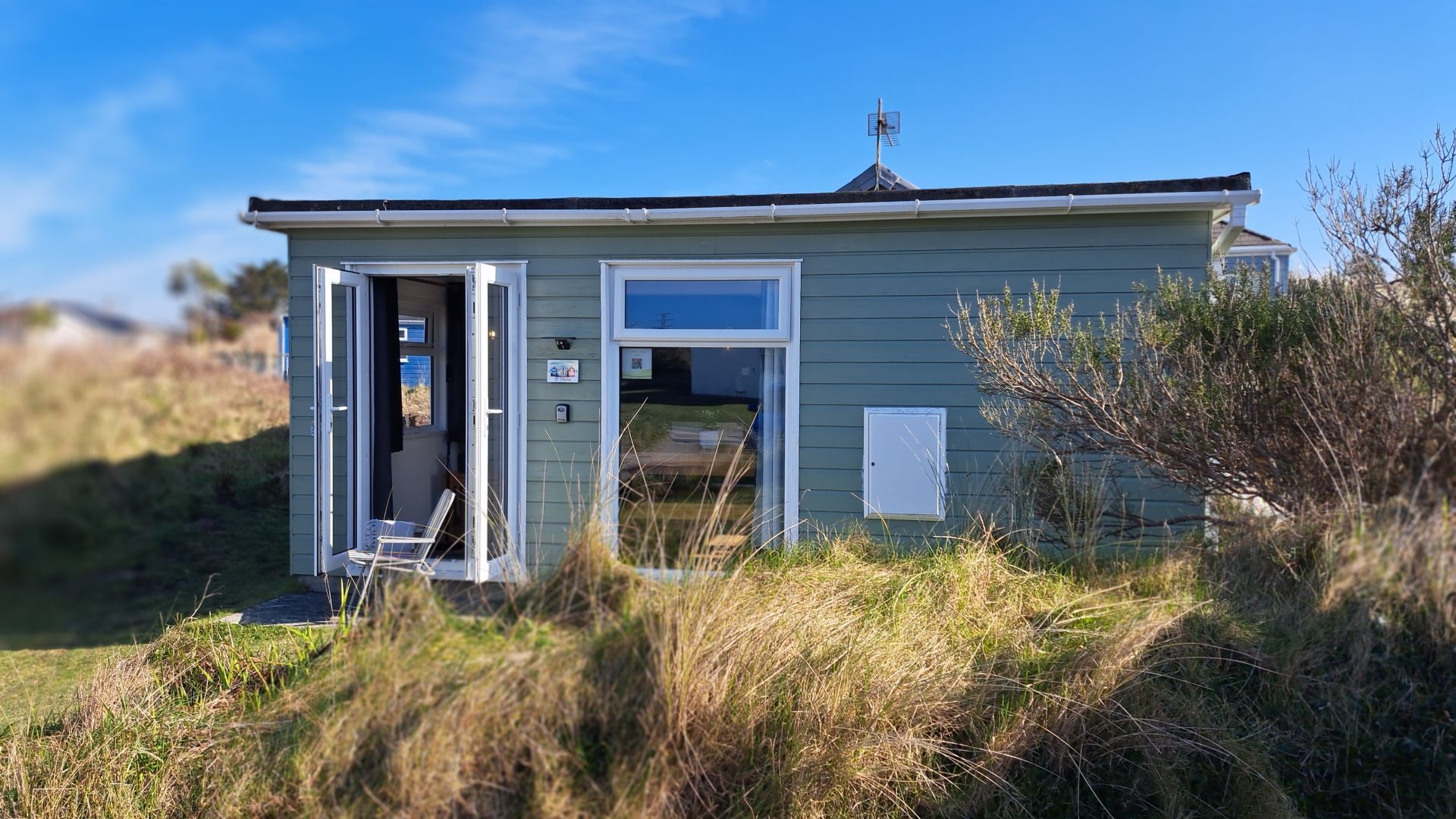 St Meva is a recently refurbished holiday chalet nestled among the sand dunes in a quiet spot on Riviere Towans, just a short stroll from Hayle’s three miles of golden, sandy beach. Comfortable and stylish, it offers super facilities and thoughtful furnishings, making it an easy place to slow down and soak up the coastal landscape of West Cornwall. A well-behaved family dog is welcome.