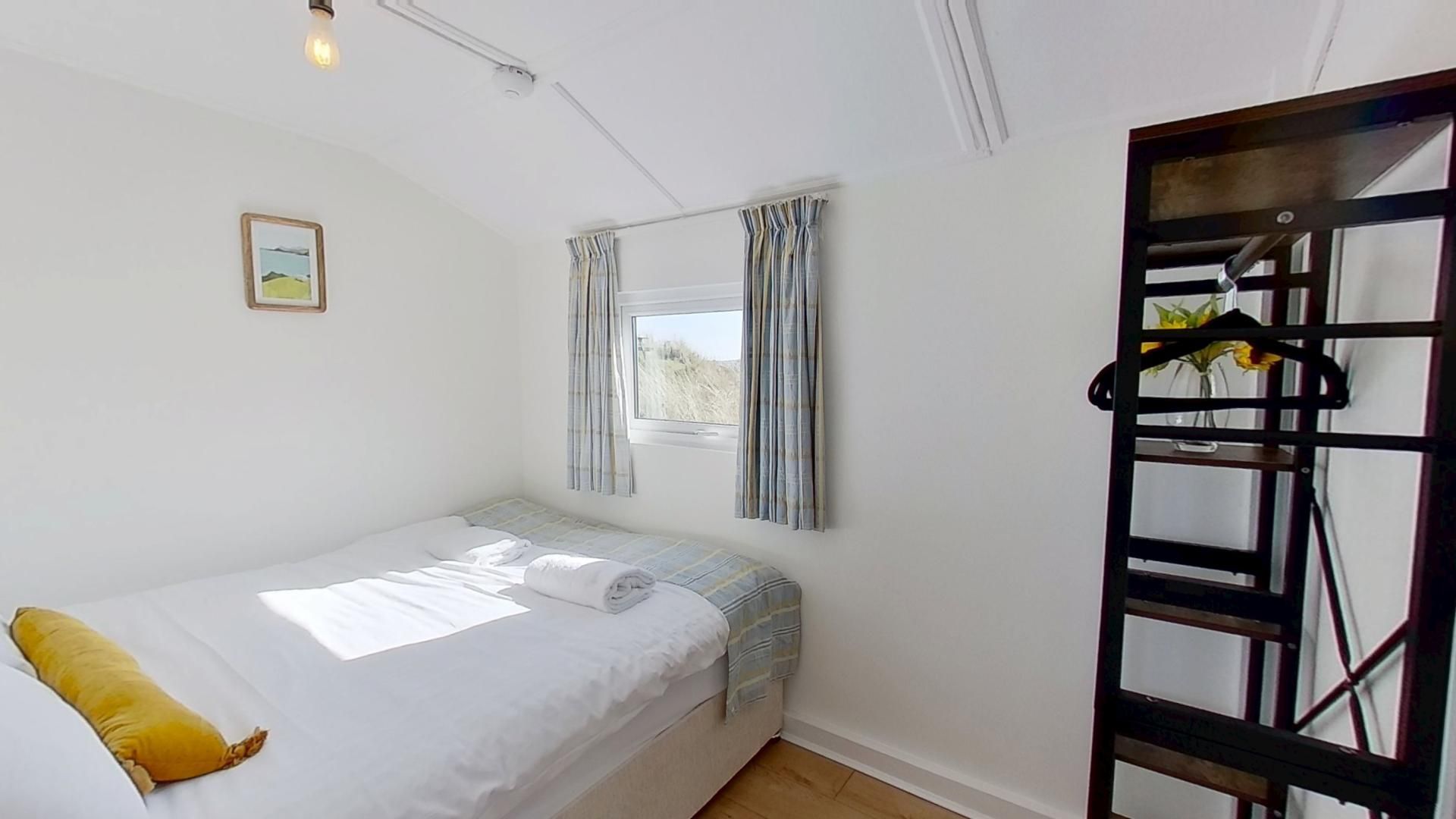 Bedroom 1 - Double bed, hanging and storage space, Towans views to the rear of the chalet.