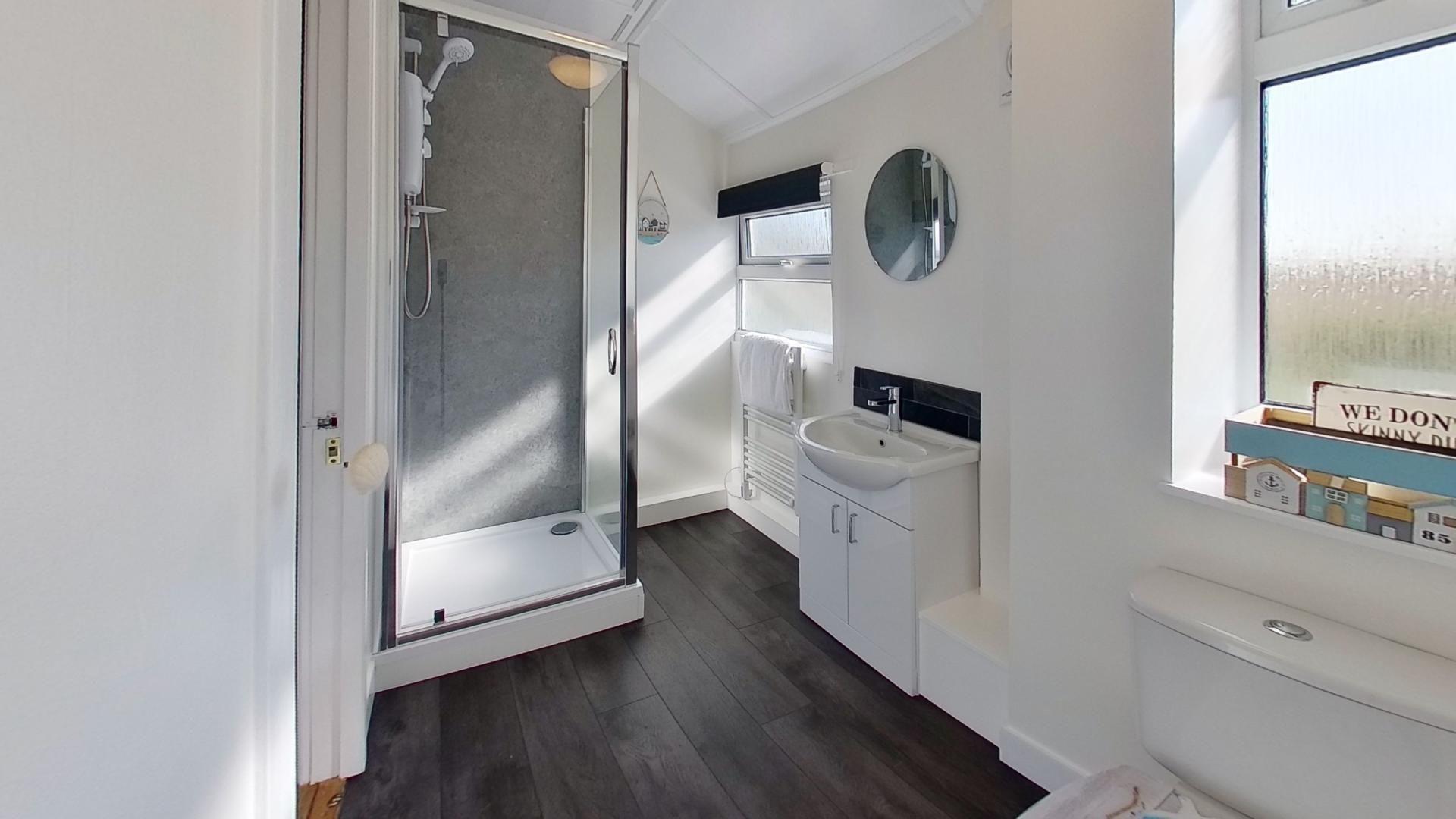 Shower Room - Good-size room with shower cubicle, wash basin with vanity unit, heated towel rail and WC.