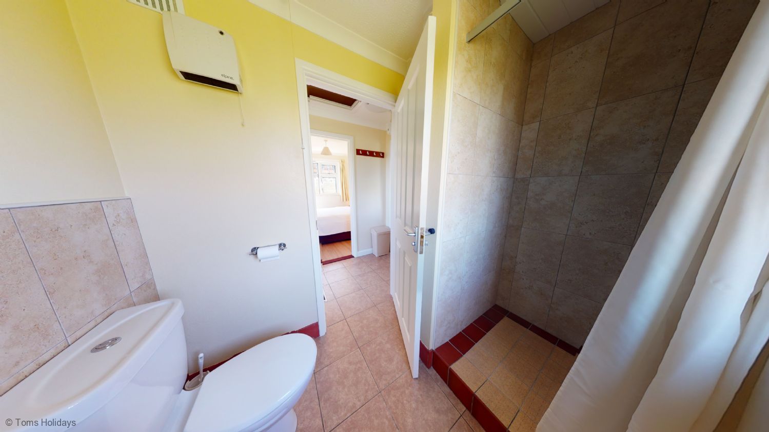 - Bathroom — Fitted shower cubicle with electric shower, large sink and WC.