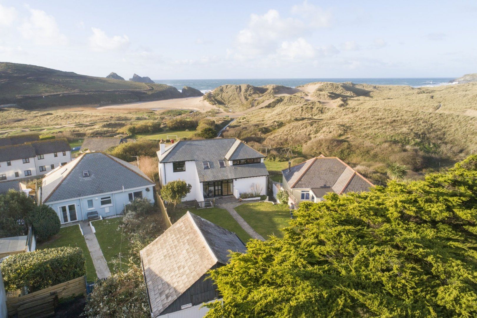 Set into the dunes, this coastal home is just a short stroll from Holywell Bay's golden sands and glistening waters. This is a family home at heart, where paws are also welcome – and with its postcard-perfect location, this is definitely a holiday your four-legged friends won’t want to miss out on. After all, what more could your pooch want than a path leading directly down to the coast, where swimming in the sea and beach ‘zoomies’ await?