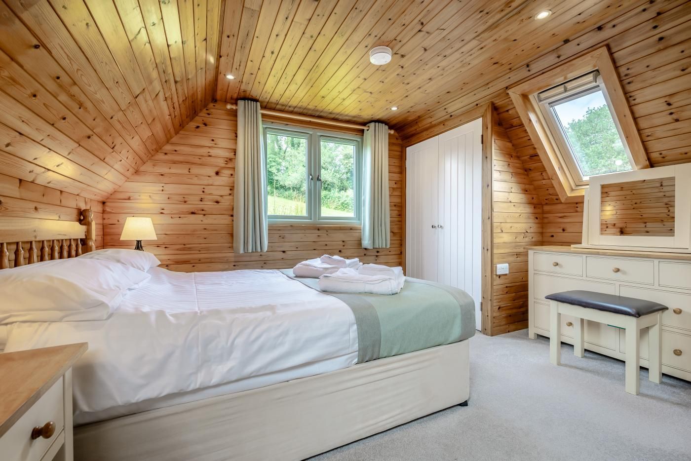 Enter the front of this property via the decked area and double doors, you will find yourself in the lounge which has a wood burner effect fire and a comfortable sofa for cosy nights in.
