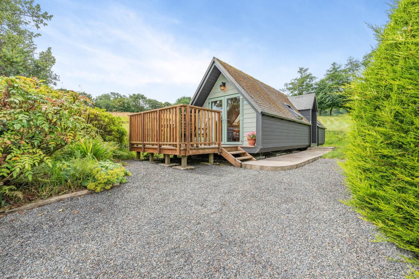 Set on a holiday complex of lodges with access to leisure facilities, this cosy property boasts a quiet spot and wonderful views over the woodland and surrounding open fields.