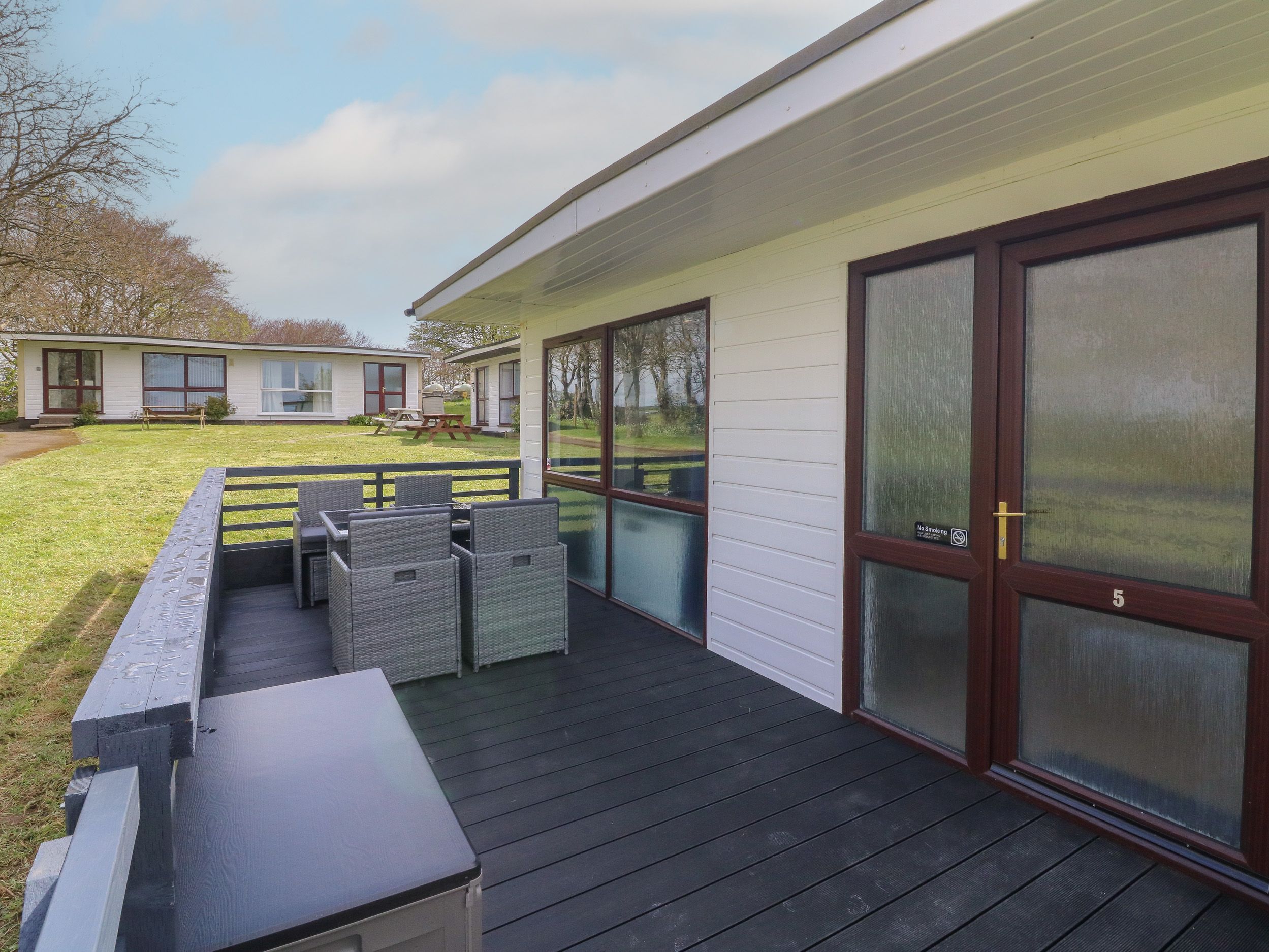 Holiday home Cassia has a king-size and a twin bedroom serviced by a shower room with a walk-in shower, basin, heated towel rail and WC. There’s an open-plan living space with a kitchen equipped with an electric oven and hob, microwave, fridge with ice box, washing machine, dishwasher, kettle and toaster, a dining area and a sitting area with TV. Electric central heating, WiFi, fuel and power, bed linen and towels are included in the rent. Outside there’s a public car park and an enclosed front decking with furniture and communal lawn. Two small well-behaved dogs or one large dog welcome. The Stowe at Penstowe Manor is now open for refreshments and entertainment Sorry, no smoking. Shop 0.5 miles, pub 0.6 miles, beach 3.2 miles. Bring your loved one year after year to Cassia. Note: Car park is located a short, uphill walk away