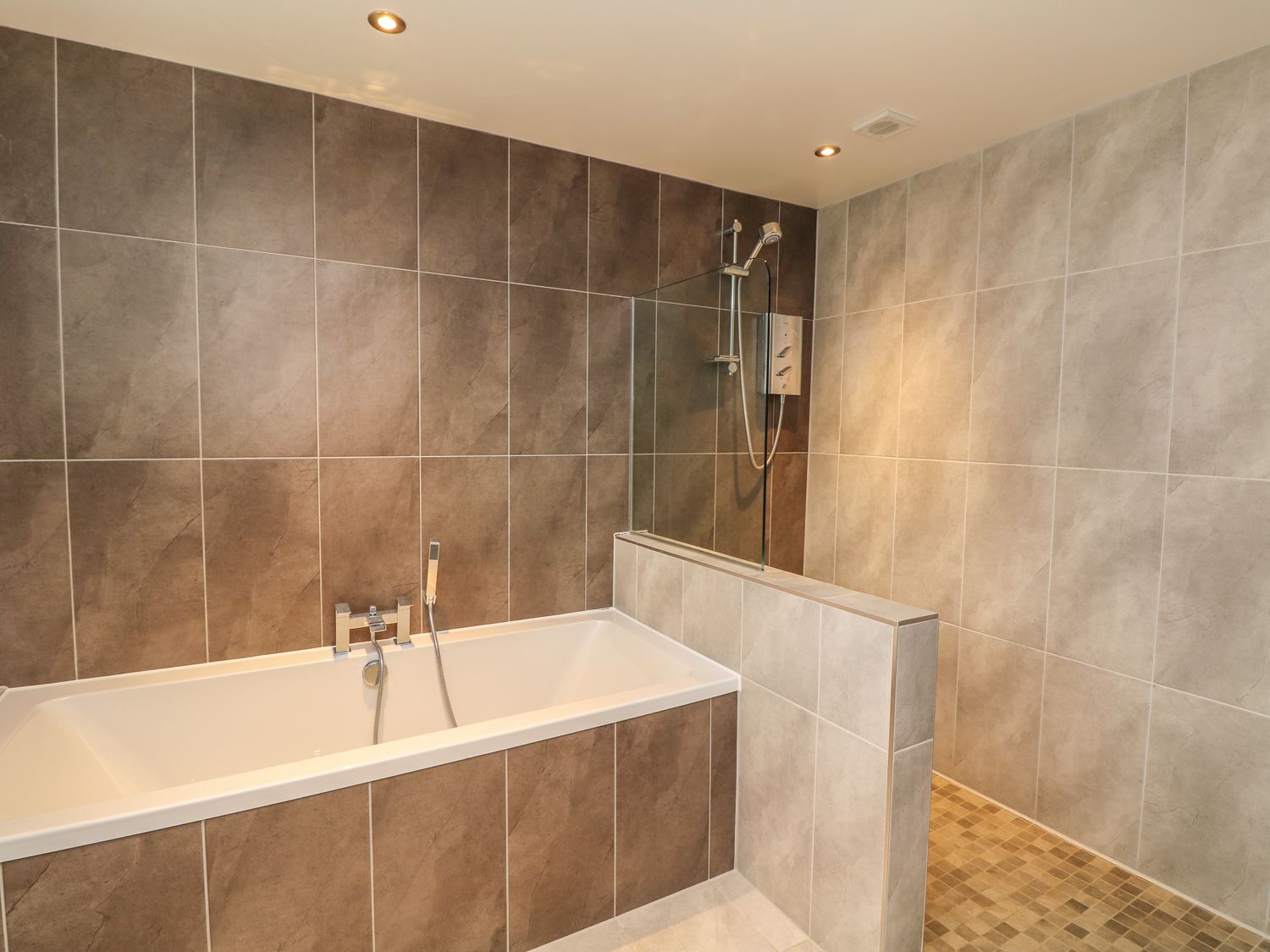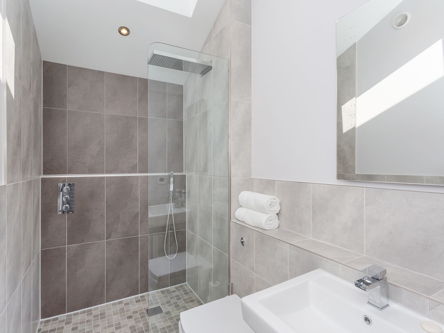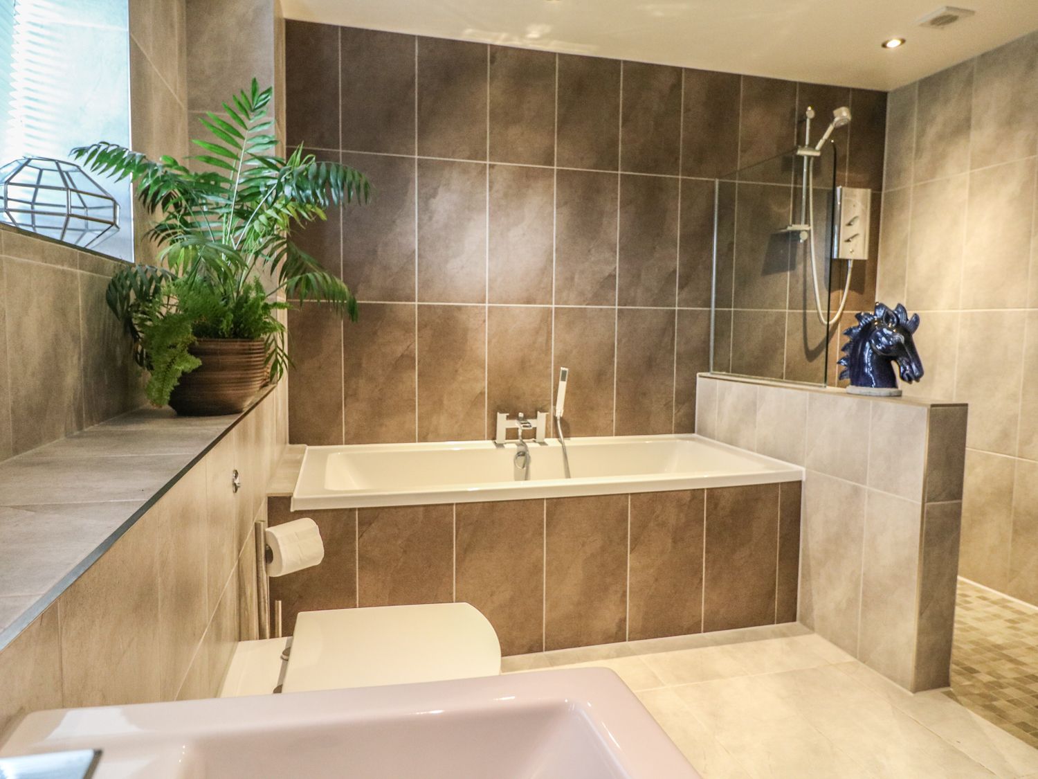 Over three floors. Four bedrooms:Second floor king size double with TV, en-suite shower room, walk in shower, basin and WC and juliet balcony, second floor super king-size double (zip/link can be twin on request), second floor twin room with 2.5" beds (zip/link can be king-size double on request), ground floor double. Second floor bathroom with bath, walk in double shower, basin and WC. First floor open plan living area with kitchen, dining area and sitting area with woodburning stove and patio doors to garden. Ground floor cloak room with WC. Ground floor cinema room with 65" Smart TV. Utility room.