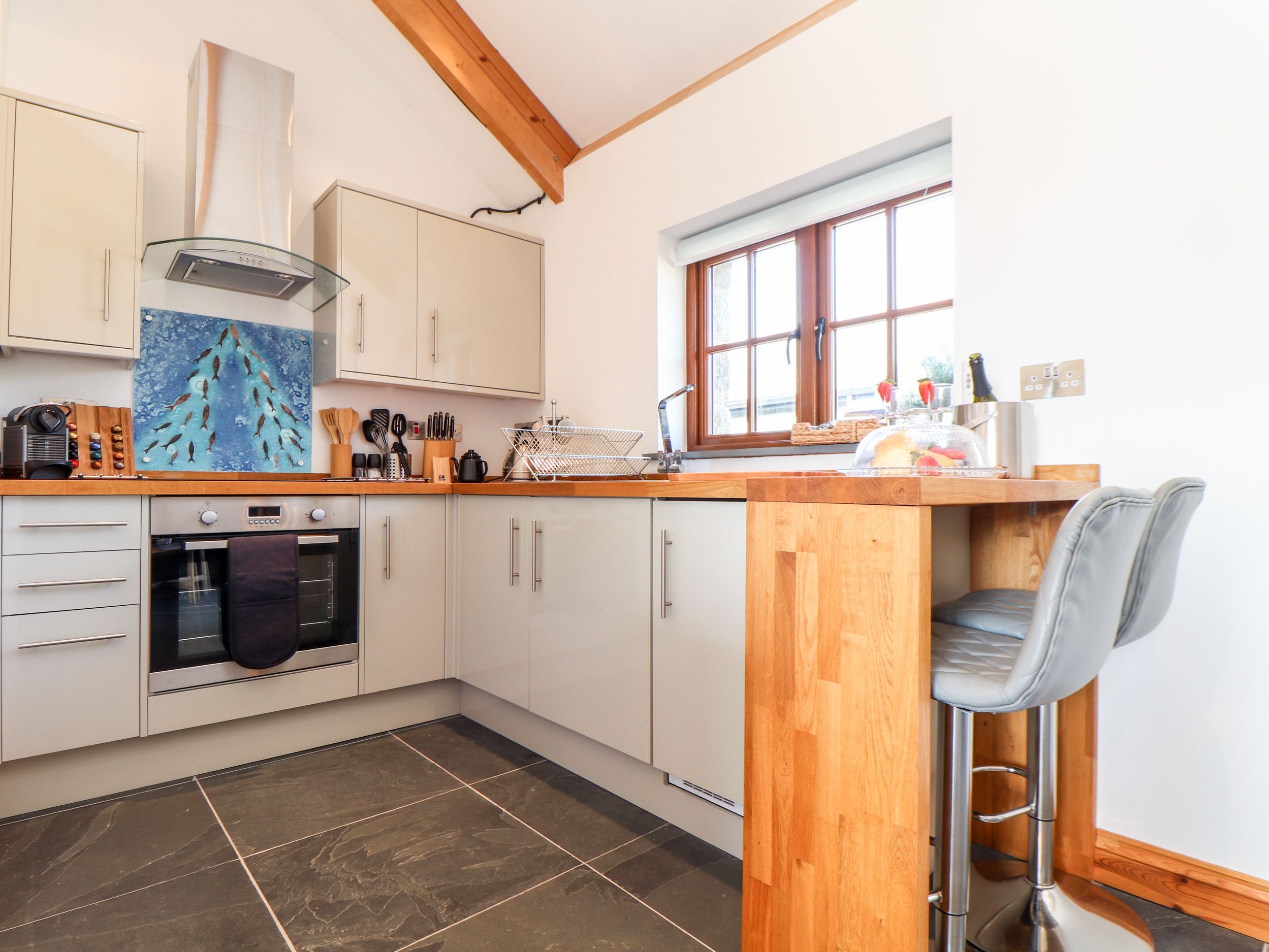 Amenities Electric underfloor heating. Electric oven and hob, fridge with icebox, coffee maker, microwave. Smart TV with Netflix, WiFi, selection of games. Fuel and power inc. in rent. Bed linen and towels inc. in rent. Cot available on request. Off road parking. Enclosed rear decking with furniture and hot tub. Sorry, no pets. Note: Smoking is only permitted on the patio. Shop 1.5 miles, pub 1.6 miles. Note: Babes-in-arms are welcome at this property. Note: There are steps up in the outdoor space, please take care. Note: This property is semi-detached with the owner's farmhouse