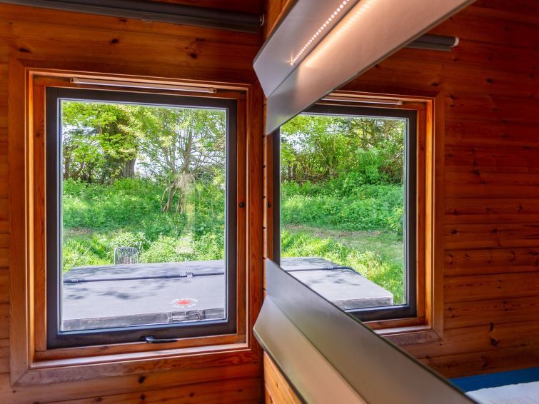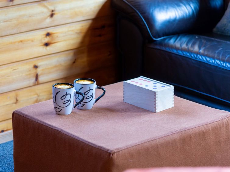 3-room chalet 242 m2. Simple and cosy furnishings: open living room with TV (flat screen). Exit to the terrace. Open kitchen (oven, 4 ceramic glass hob hotplates, toaster, kettle, microwave, freezer) with dining table. Shower/WC. On the lower ground floor: 1 double bedroom with 1 double bed.