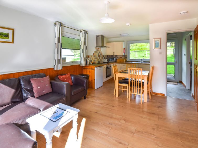 3-room chalet 36 m2. Tasteful and cosy furnishings: open living/dining room with dining table and TV (flat screen). 1 double bedroom with 1 double bed. 1 room with 1 x 2 bunk beds. Open kitchen (oven, 4 ceramic glass hob hotplates, toaster, kettle, microwave). Bath/shower/WC. Patio.